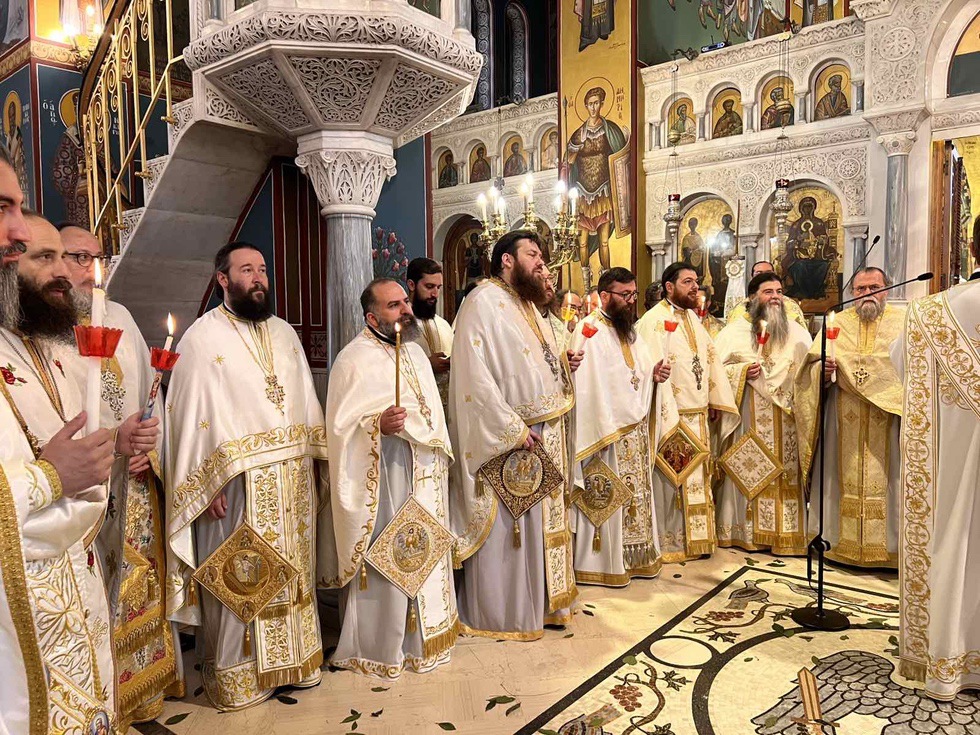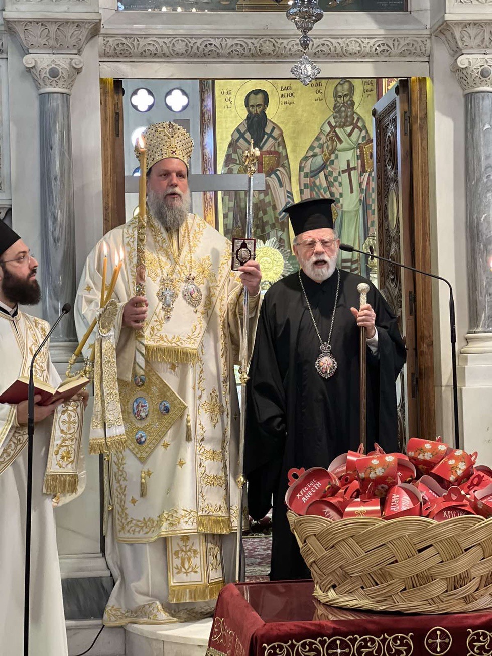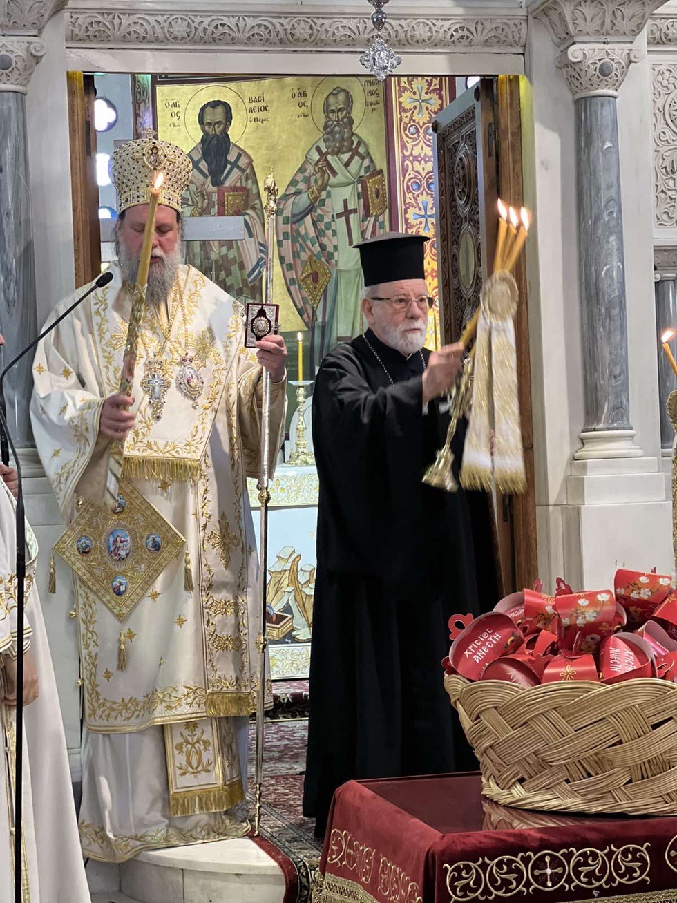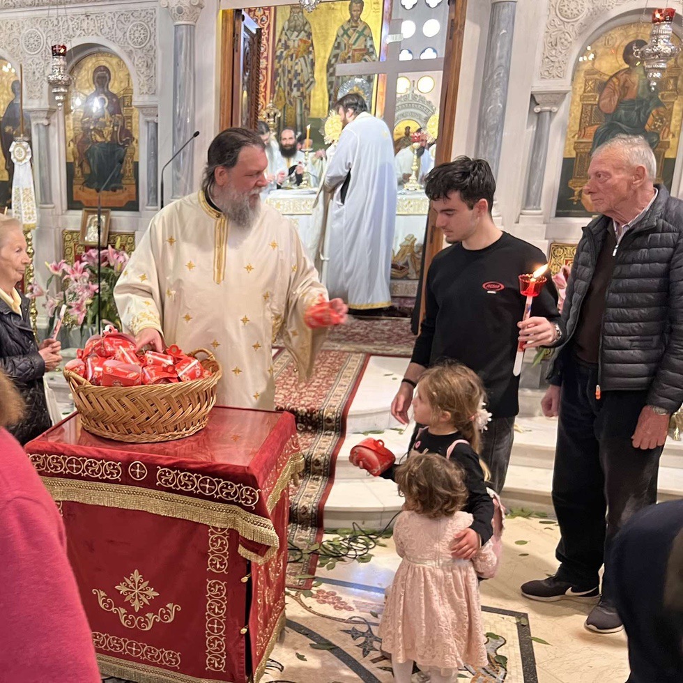 Κατά την διάρκεια της Ακολουθίας του Εσπερινού το Ιερό Ευαγγέλιο αναγνώσθηκε σε διάφορες γλώσσες, ενώ ο Σεβασμιώτατος Μητροπολίτης κ. Γαβριήλ απηύθυνε προς τους πιστούς τον Αναστάσιμο χαιρετισμό «Χριστός Ανέστη» και τις πασχάλιες ευχές του για ειρήνη στον κόσμο, διανέμοντας κατά το έθος, ως ευλογία, κόκκινα αυγά.