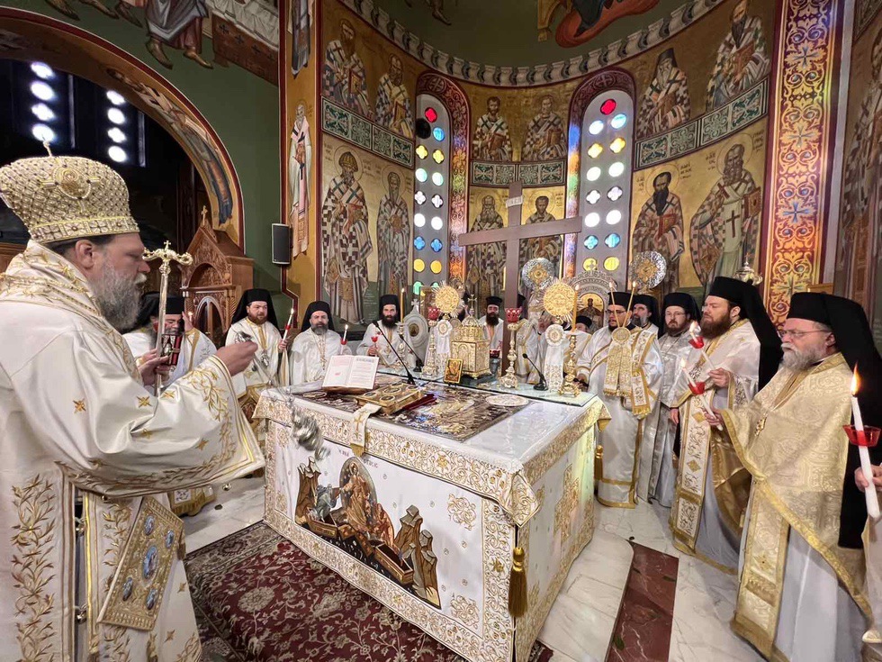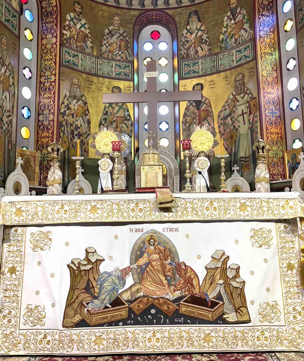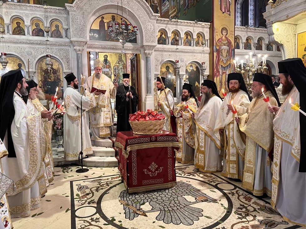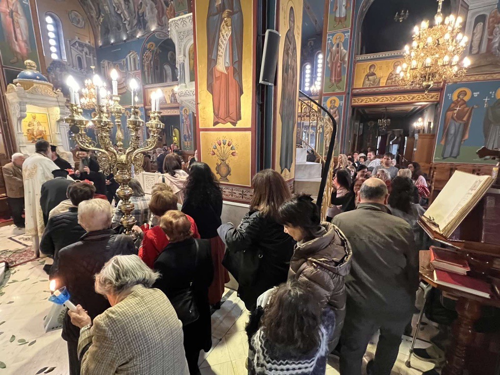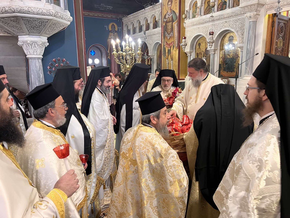 Κατά την διάρκεια της Ακολουθίας του Εσπερινού το Ιερό Ευαγγέλιο αναγνώσθηκε σε διάφορες γλώσσες, ενώ ο Σεβασμιώτατος Μητροπολίτης κ. Γαβριήλ απηύθυνε προς τους πιστούς τον Αναστάσιμο χαιρετισμό «Χριστός Ανέστη» και τις πασχάλιες ευχές του για ειρήνη στον κόσμο, διανέμοντας κατά το έθος, ως ευλογία, κόκκινα αυγά.
