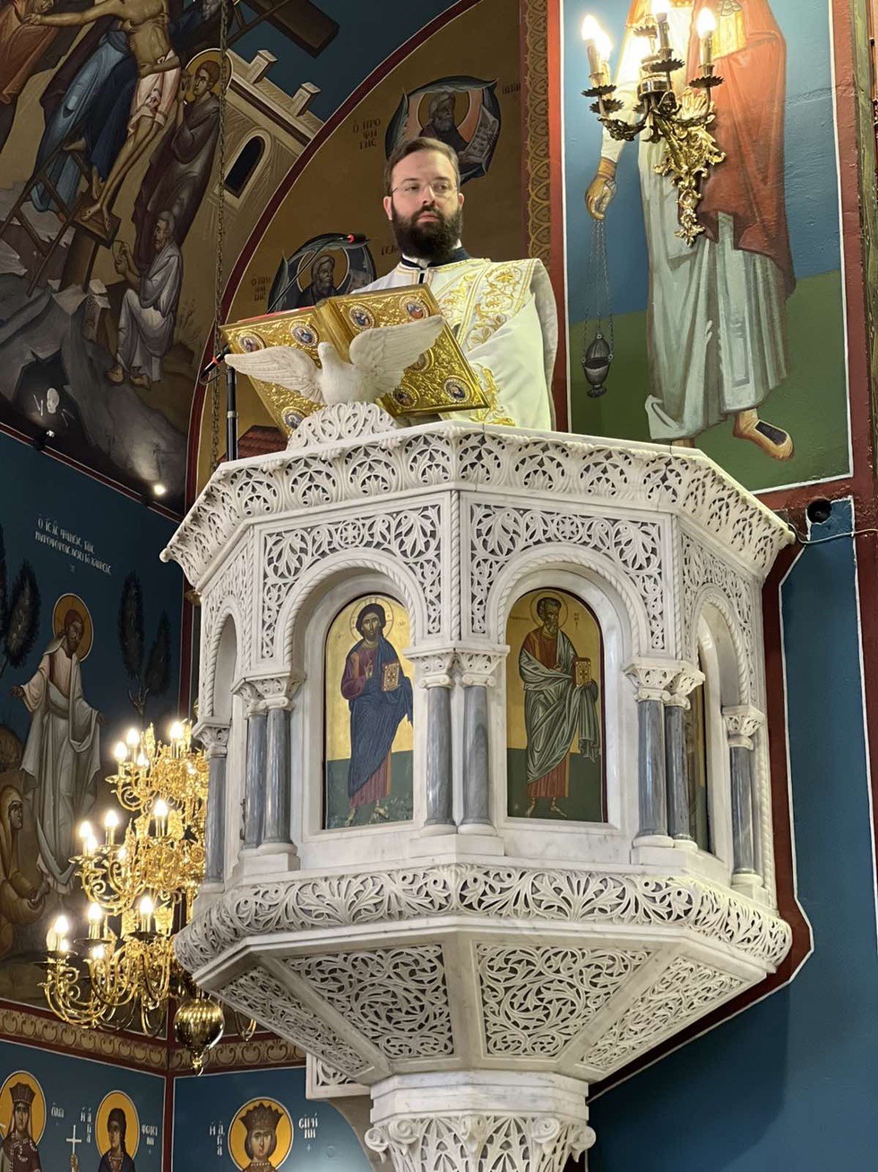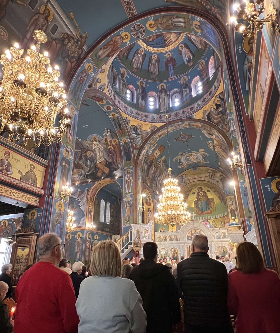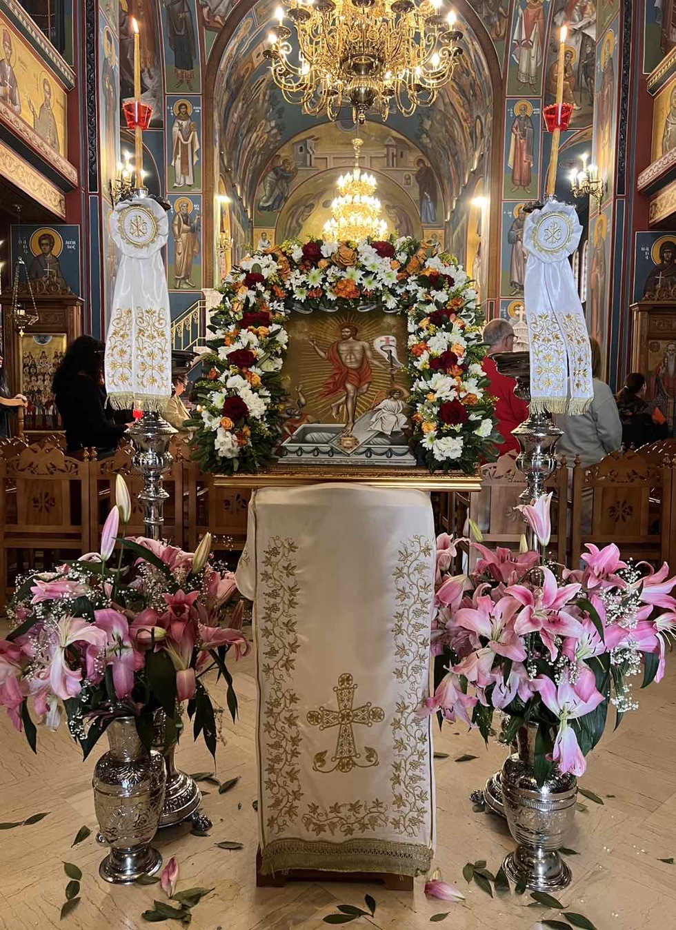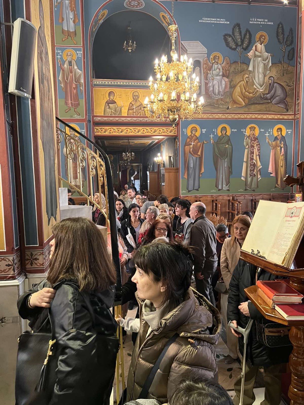 Κατά την διάρκεια της Ακολουθίας του Εσπερινού το Ιερό Ευαγγέλιο αναγνώσθηκε σε διάφορες γλώσσες, ενώ ο Σεβασμιώτατος Μητροπολίτης κ. Γαβριήλ απηύθυνε προς τους πιστούς τον Αναστάσιμο χαιρετισμό «Χριστός Ανέστη» και τις πασχάλιες ευχές του για ειρήνη στον κόσμο, διανέμοντας κατά το έθος, ως ευλογία, κόκκινα αυγά.