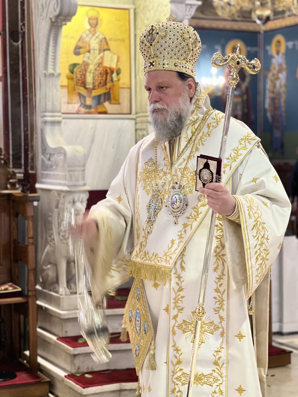 Συμπροσευχόμενος εντός του Ιερού Βήματος παρέστη ο Σεβασμιώτατος Μητροπολίτης Ανέων κ. Μακάριος.
