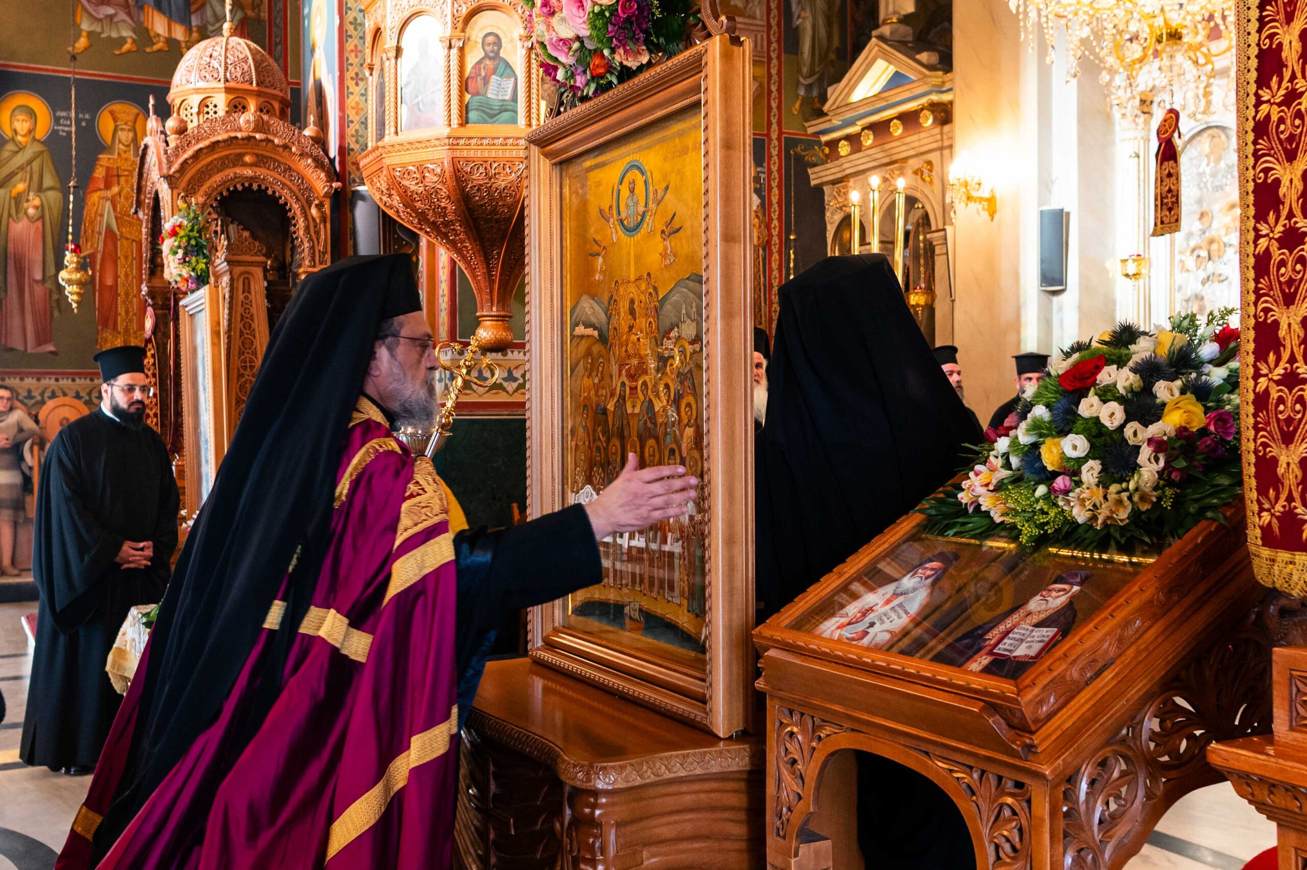 Τον Σεβασμιώτατο πλαισίωσαν ο Πρωτοσύγκελλος της Ιεράς Μητροπόλεως Μεσσηνίας Αρχιμ. Φίλιππος Χαμαργιάς και οι εφημέριοι της πόλεως της Καλαμάτας, ενώ τα ιερά αναλογία κόσμησαν οι δύο χοροί του Μητροπολιτικού Ναού της Υπαπαντής του Χριστού Καλαμάτας, υπό την διεύθυνση του Πρωτοψάλτου κ. Κωνσταντίνου Σιάχου και του Λαμπαδαρίου κ. Πέτρου Σταύρου.