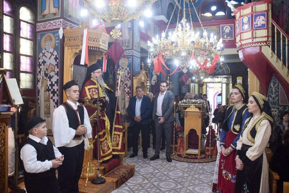 Στον πανηγυρίζοντα Ιερό Ναό, τον οποίον κατέκλυσαν πλήθη λαού από το χωριό και τις γύρω περιοχές, με εμφανή την παρουσία των παιδιών και των νέων του τόπου, μάλιστα δε κάποιων εξ’αυτών ενδεδυμένων με τις παραδοσιακές στολές τους, τελέστηκε ο μέγας πανηγυρικός αρχιερατικός εσπερινός προς τιμήν του Αγίου Δημητρίου, παρουσία του Δημάρχου Τυρνάβου κ. Στέλιου Τσικριτσή. Καλλικέλαδοι Ιεροψάλτες απέδωσαν τόσο τους αναστάσιμους ύμνους, όσο και τα εόρτια του Μεγαλομάρτυρα Αγίου Δημητρίου, δημιουργώντας κλίμα πανηγυρικό και συνάμα προσευχητικό.