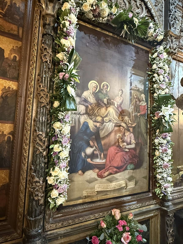 Στο τέλος του Εσπερινού έγινε η περιφορά της Ιεράς Εικόνος στους δρόμους και την κεντρική πλατεία του Τυρνάβου, όπου έγινε η αρτοκλασία ανεπέμφθη δέηση και ο Σεβασμιώτατος εξεφώνησε κήρυγμα αναφερόμενος στη χαρά της οικογένειας του Ιωακείμ και της Άννας, η οποία προσαυξήθηκε με νέο μέλος την Υπεραγία Θεοτόκου. Ο Σεβασμιώτατος αναφέρθηκε στο μυστήριο κσι τον θεσμό της οικογένειας, η ιερότητα της οποίας ποικιλοτρόπως βάλεται γι’ αυτό και πρέπει να ενισχυθεί. Ο Σεβασμιώτατος τόνισε ότι δεν έχει σημασία η οικονομική ενίσχυση της οικογένειας, αν και είναι πάντα καλοδεχούμενη, όσο η ηθική θωράκιση της, καθώς εάν ο θεσμός της οικογένειας δεν χαρακτηρίζεται από ιερότητα και αν δεν στηρίζεται στην αίσθηση του ιερού που πρέπει να έχει ο κάθε άνθρωπος, τότε πραγματικά εκτρέπεται και τα θεμέλια του καθίστανται σαθρά. Ο Σεβασμιώτατος αναφέρθηκε, επίσης, στο δημογραφικό πρόβλημα και παρακάλεσε τα νέα παιδιά να προσέχουν τις σχέσεις τους, έτσι ώστε να δημιουργούνται οικογένειες ευλογημένες με καλά παιδιά, δηλαδή με παιδιά τα οποία θα πορεύονται γεμάτα αρχές και αξίες, αλλά και χαρά στην κοινωνία ώστε να αντικαταστήσουν τις απερχόμενες γενεές.