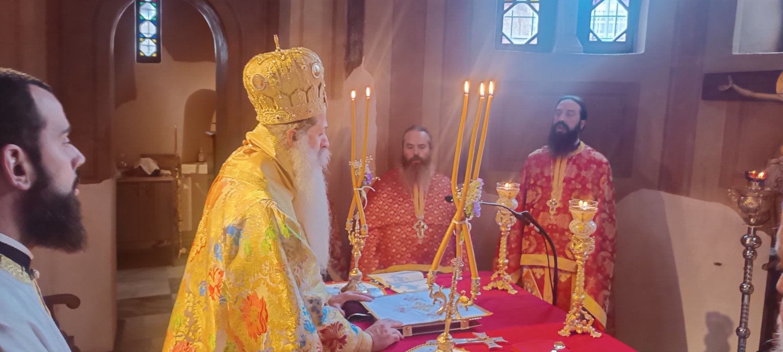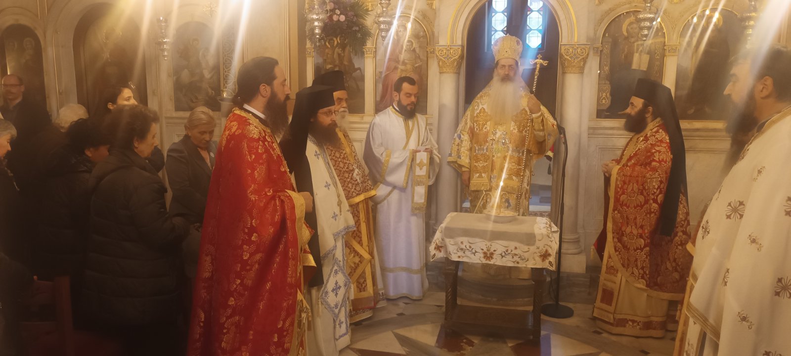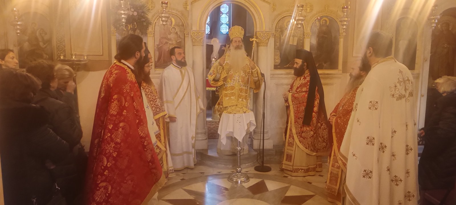 Ο Προϊστάμενος του Ναού, Αρχιμ. π. Βασίλειος Κολοκυθάς, εξέφρασε την ευγνωμοσύνη του προς τον Σεβασμιώτατο κ. Συμεών για τα όσα προσέφερε στο Ναό του ως Πρωτοσύγκελλος της Αρχιεπισκοπής και τον ευχαρίστησε για την ευλογητική του παρουσία και ιερουργία.