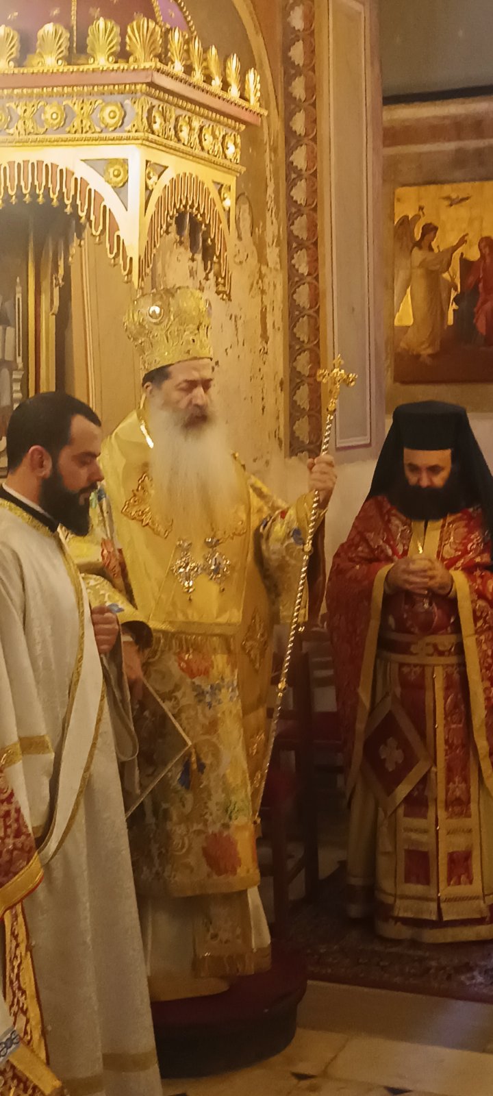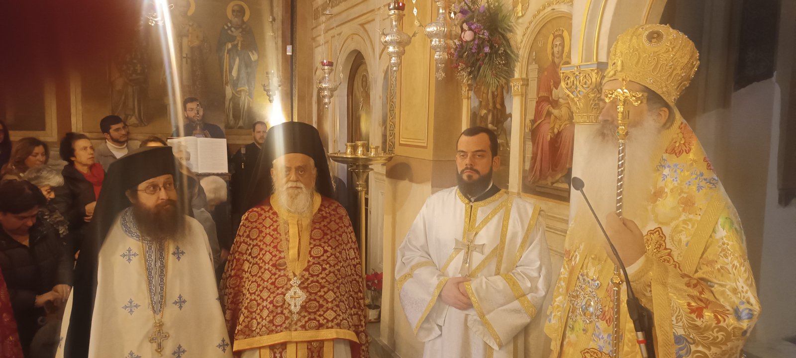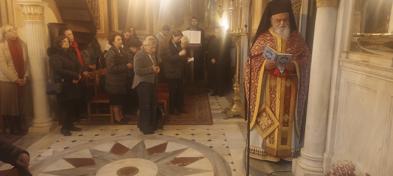 Ο Προϊστάμενος του Ναού, Αρχιμ. π. Βασίλειος Κολοκυθάς, εξέφρασε την ευγνωμοσύνη του προς τον Σεβασμιώτατο κ. Συμεών για τα όσα προσέφερε στο Ναό του ως Πρωτοσύγκελλος της Αρχιεπισκοπής και τον ευχαρίστησε για την ευλογητική του παρουσία και ιερουργία.