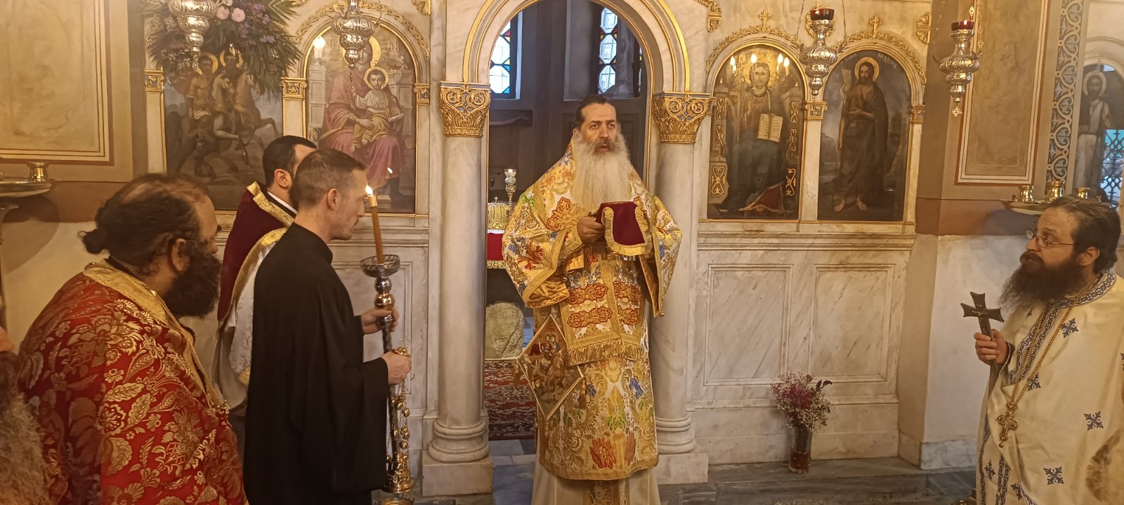 Ο Σεβασμιώτατος στον λόγο του ευχαρίστησε υιικώς τον Μακαριώτατο Αρχιεπίσκοπο Αθηνών και πάσης Ελλάδος κ.κ. Ιερώνυμο τον Β΄, τον Ποιμενάρχη της Ιεράς Αρχιεπισκοπής Αθηνών και Προκαθήμενο της Εκκλησίας της Ελλάδος για την πατρική άδεια και ευλογία της τελέσεως της Αρχιερατικής Θείας Λειτουργίας και ανέλυσε την έννοια της πίστεως με βάση την φράση του ιερού απολυτικίου «μεγάλα τα της πίστεως κατορθώματα».