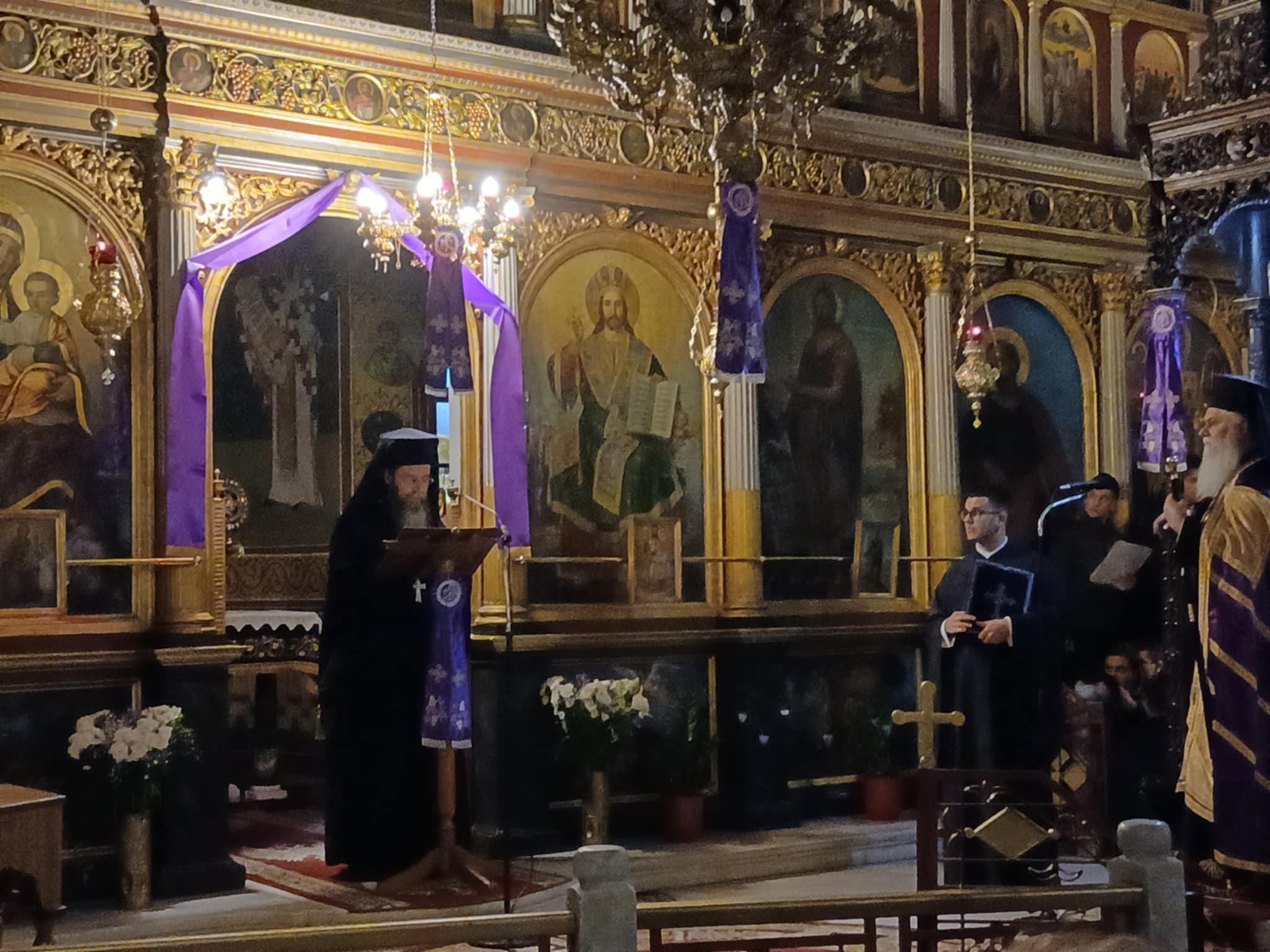 Εν συνεχεία, ευχαρίστησε θερμότατα τον π. Αμβρόσιο για την εμπνευσμένη, θεολογικά τεκμηριωμένη και πνευματικά ωφέλιμη ομιλία του, η οποία, όπως επεσήμανε, προσέφερε ουσιαστικά εφόδια στους πιστούς για την έναρξη του πνευματικού τους αγώνος.