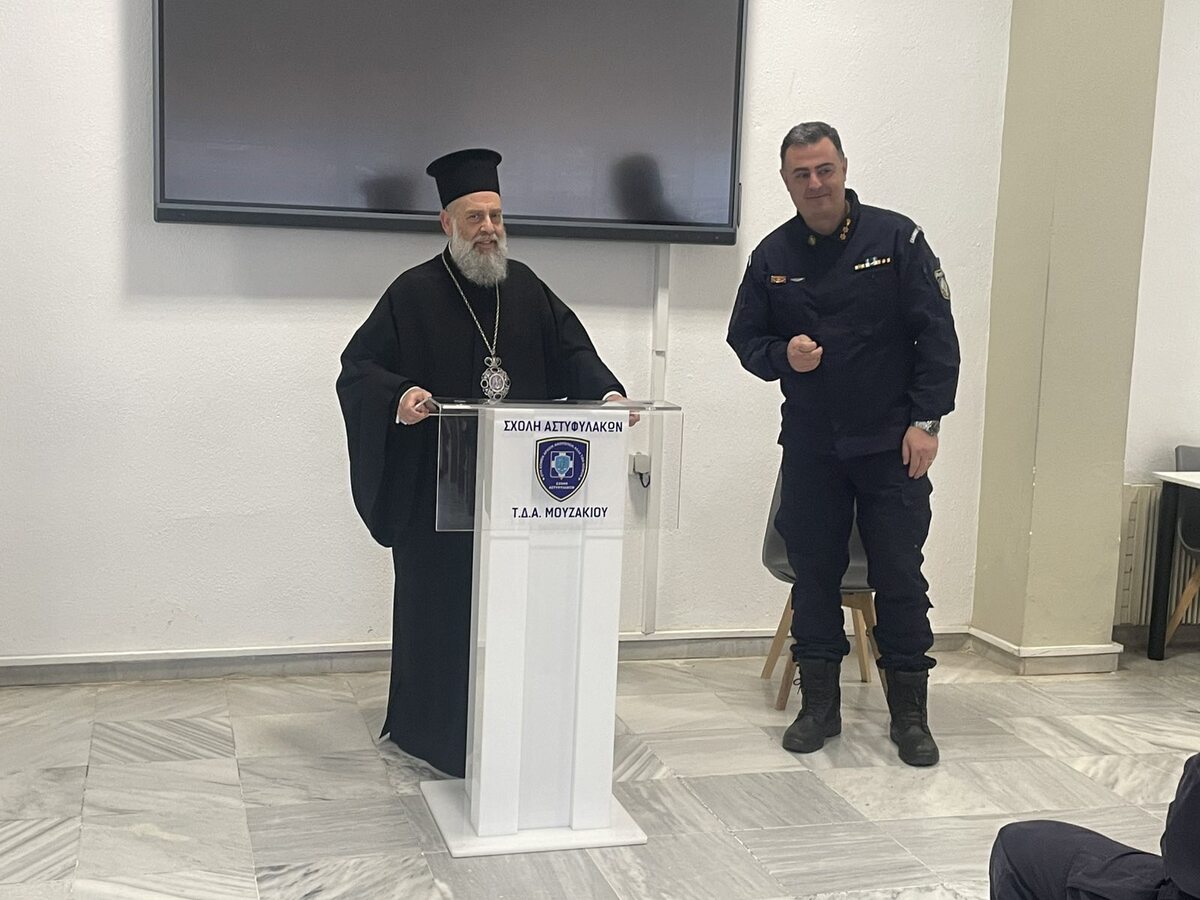 Ο Σεβασμιώτατος Μητροπολίτης μας κ. Τιμόθεος, την Πέμπτη 19 Μαρτίου 2026, επισκέφθηκε τη Σχολή Δοκίμων Αστυφυλάκων Μουζακίου, όπου πραγματοποίησε διδακτικές εισηγήσεις στο πλαίσιο της εκπαιδεύσεως των δοκίμων.