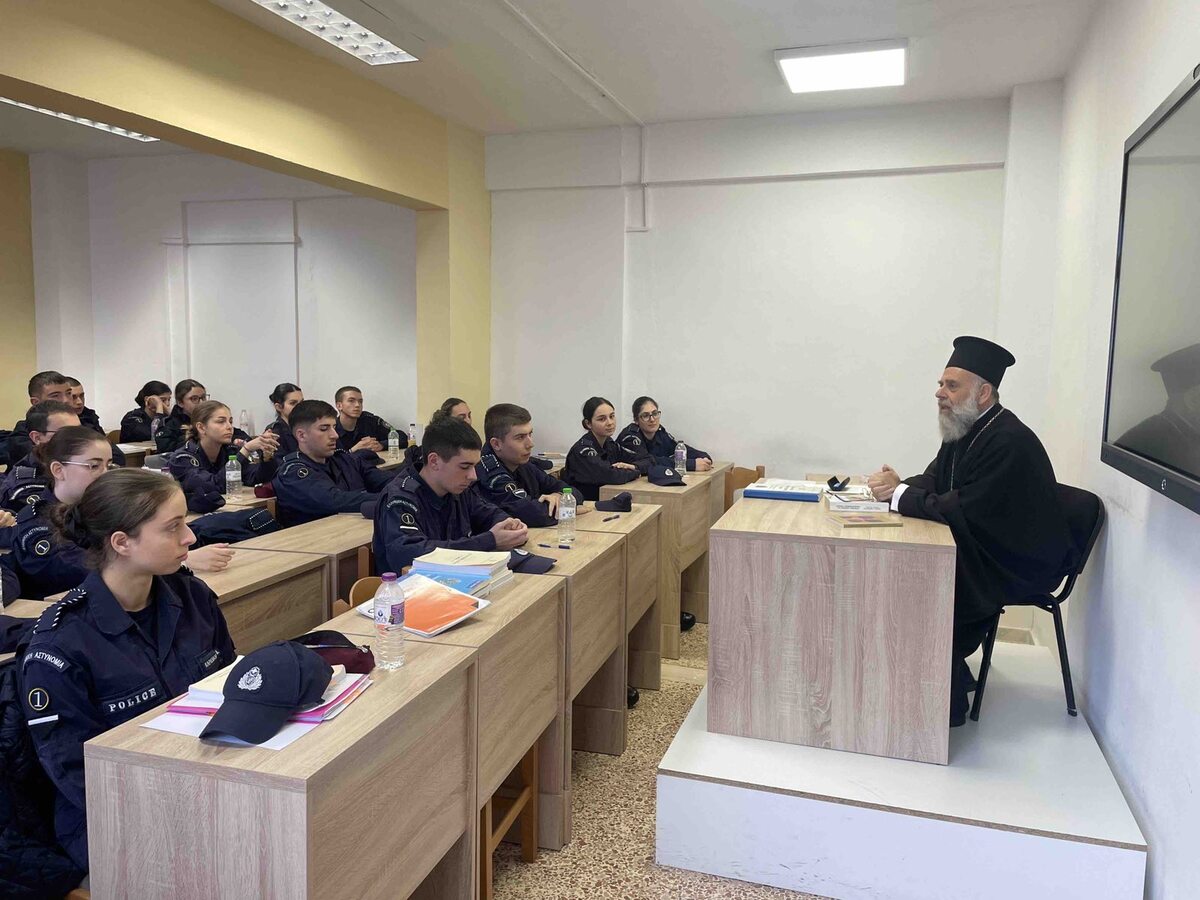 Κατά την παρουσία του, ο Σεβασμιώτατος ανέπτυξε διακριτές θεματικές ενότητες, απευθυνόμενος σε διαφορετικά έτη σπουδών. Συγκεκριμένα, στους δευτεροετείς δοκίμους ανέλυσε το ζήτημα του θρησκευτικού φονταμενταλισμού, αναδεικνύοντας τις σύγχρονες μορφές εκδήλωσής του, τους κινδύνους που εγκυμονεί για την κοινωνική συνοχή, καθώς και τον τρόπο με τον οποίο καλούνται να το προσεγγίζουν με υπευθυνότητα τα στελέχη των Σωμάτων Ασφαλείας.