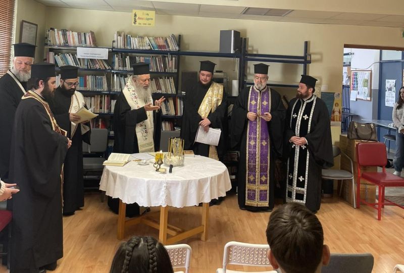 Σε όλους τους μαθητές, αφού χρίσθηκαν με άγιο έλαιο, ο Σεβασμιώτατος διένειμε αντίτυπα της Καινής Διαθήκης και ευχήθηκε εγκάρδια και πατρικά σε μαθητές και εκπαιδευτικούς εν όψει της Μ. Εβδομάδος και του Πάσχα.