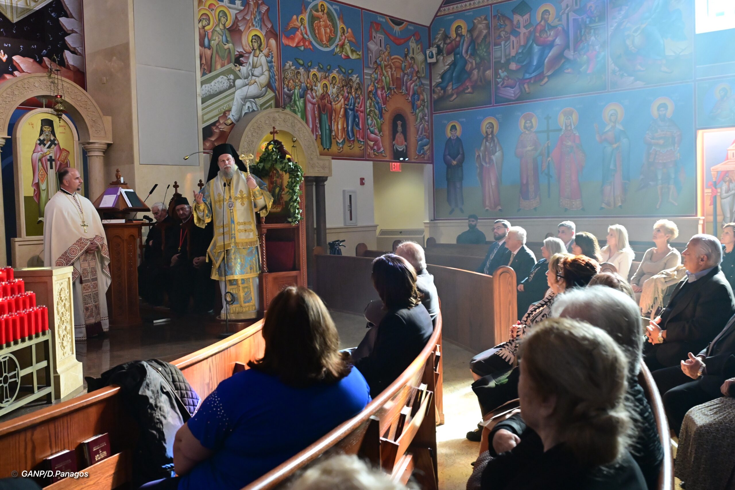 Εν συνεχεία, το Σάββατο 8 Νοεμβρίου 2025, ημέρα κατά την οποία η Εκκλησία μας τιμά τη Σύναξη των Παμμεγίστων Ταξιαρχών Μιχαήλ και Γαβριήλ, ο Σεβασμιώτατος μετέβη στη Νέα Υόρκη, όπου προεξήρχε της Πανηγυρικής Θείας Λειτουργίας στον πανηγυρίζοντα Ιερό Ναό Αρχαγγέλου Μιχαήλ, με τη συμμετοχή του Αιδεσιμ. Πρωτοσυγκέλλου της Αρχιεπισκοπικής Περιφέρειας Νέας Υόρκης π. Ηλία Βίλλη, των εφημερίων του Ναού, κληρικών της Ιεράς Αρχιεπισκοπής Αμερικής και πλήθους πιστών και Ελλήνων ομογενών, οι οποίοι προσήλθαν με ευλάβεια και κατάνυξη για να τιμήσουν τα σεπτά ονομαστήρια του.