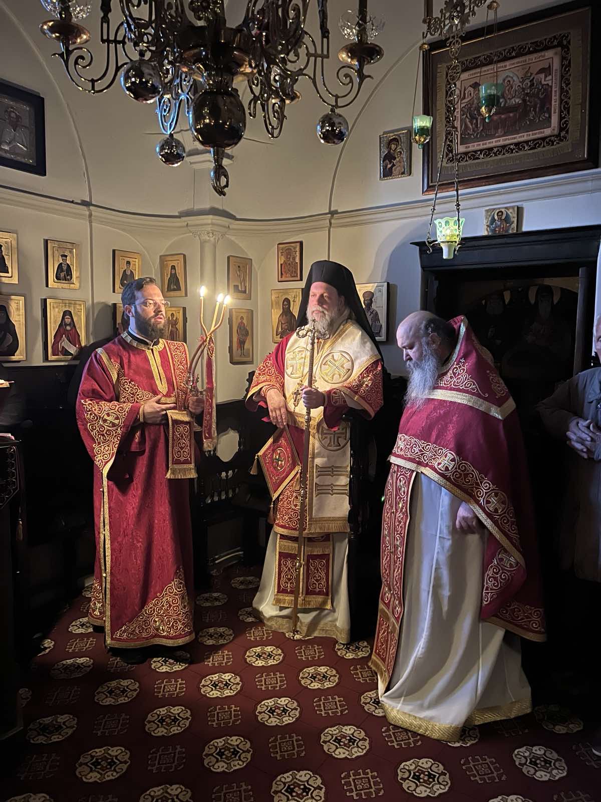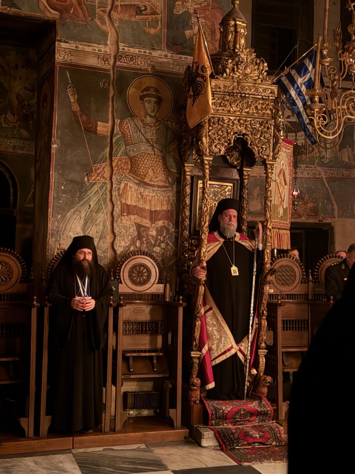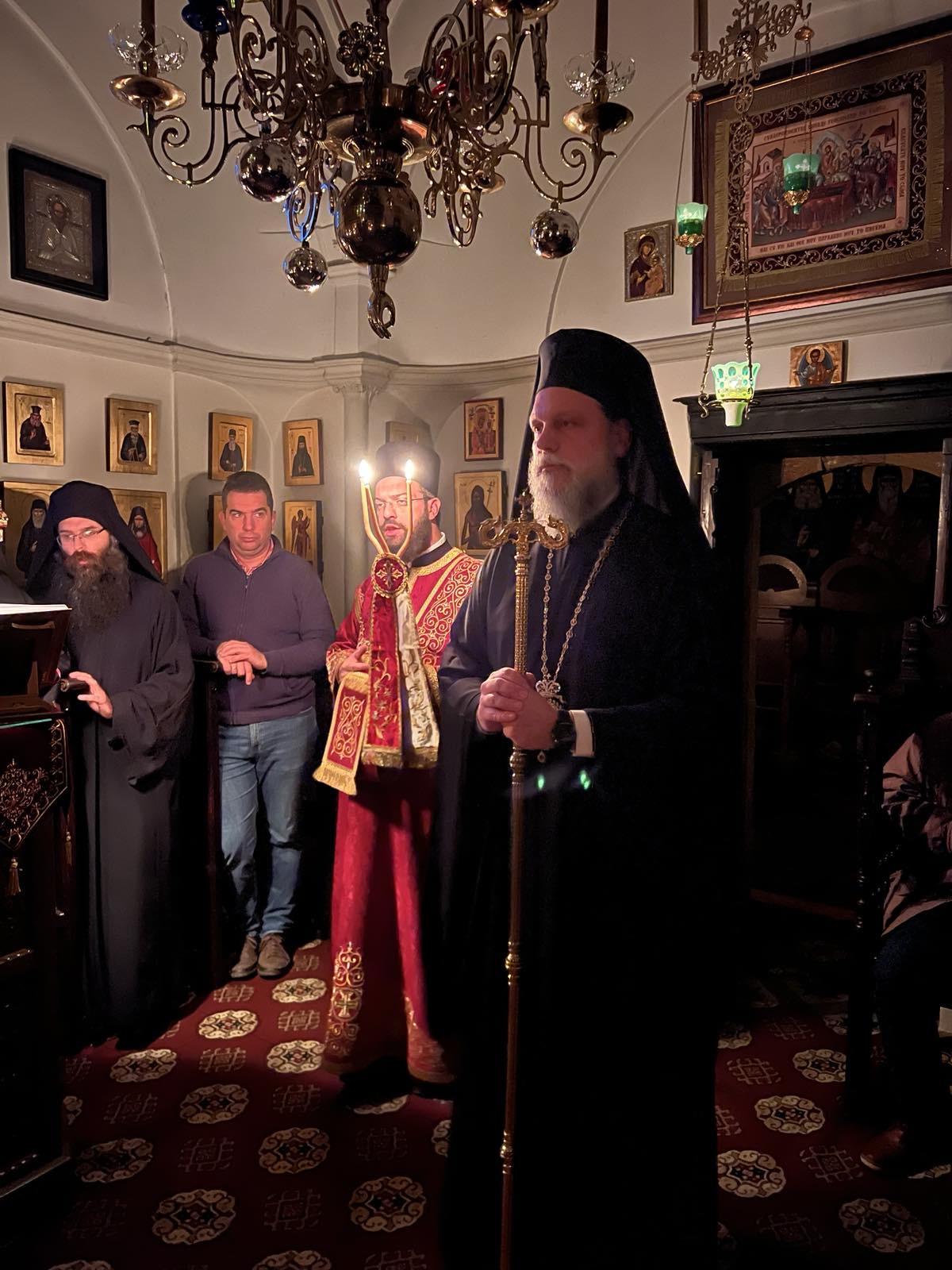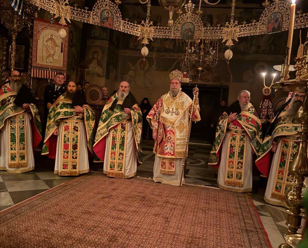 Το εσπέρας της ιδίας ημέρας, ο Σεβασμιώτατος προέστη της Πανηγυρικής Ιεράς Αγρυπνίας, η οποία τελέσθηκε στον ιστορικό Ναό του Πρωτάτου στις Καρυές του Αγίου ‘Ορους, παρουσία του Πρωτεπιστάτου του Αγίου Όρους Γέροντος Αβράαμ του Λαυριώτου, εκπροσώπων της Ιεράς Κονότητος, του Πολιτικού Διοικητή του Αγίου Όρους κ. Αλκιβιάδη Στεφανή, πολλών μοναχών και πλήθους προσκυνητών.