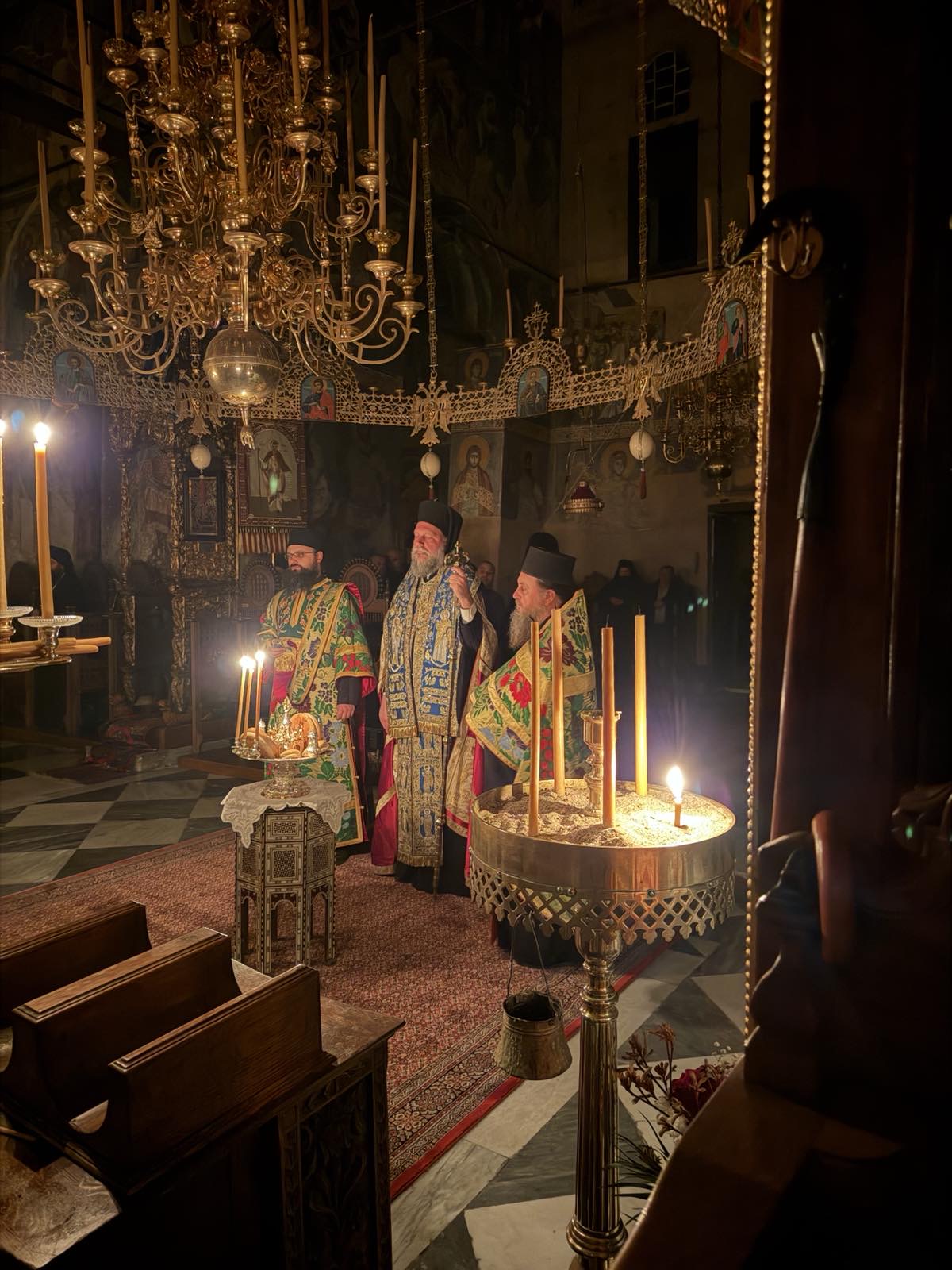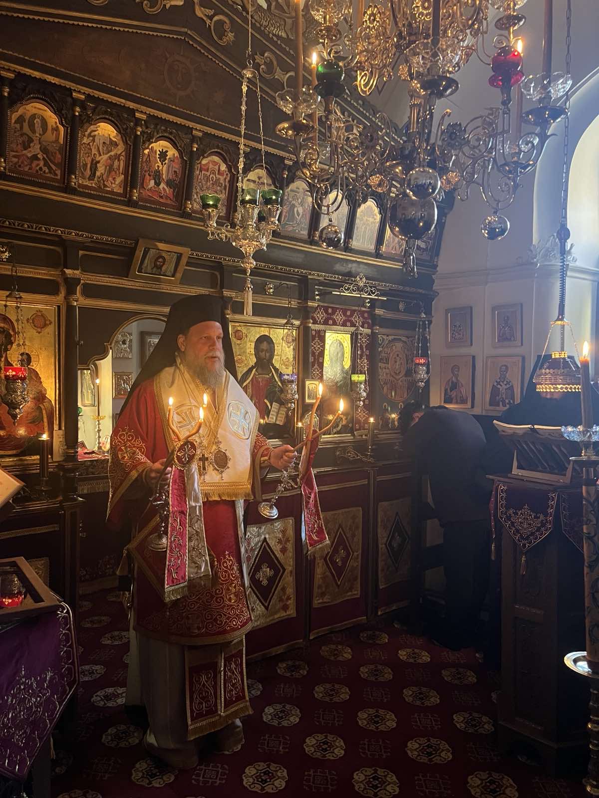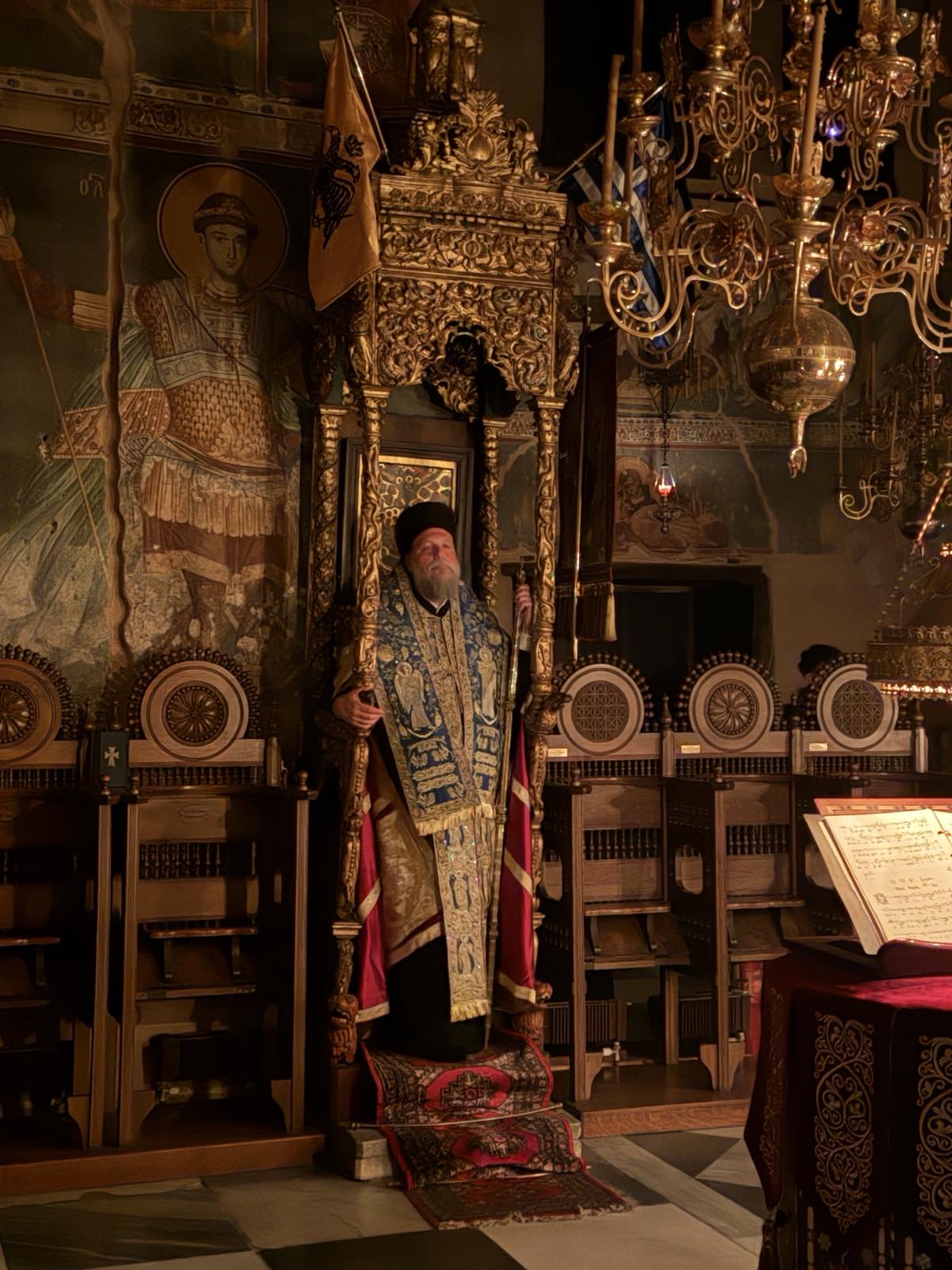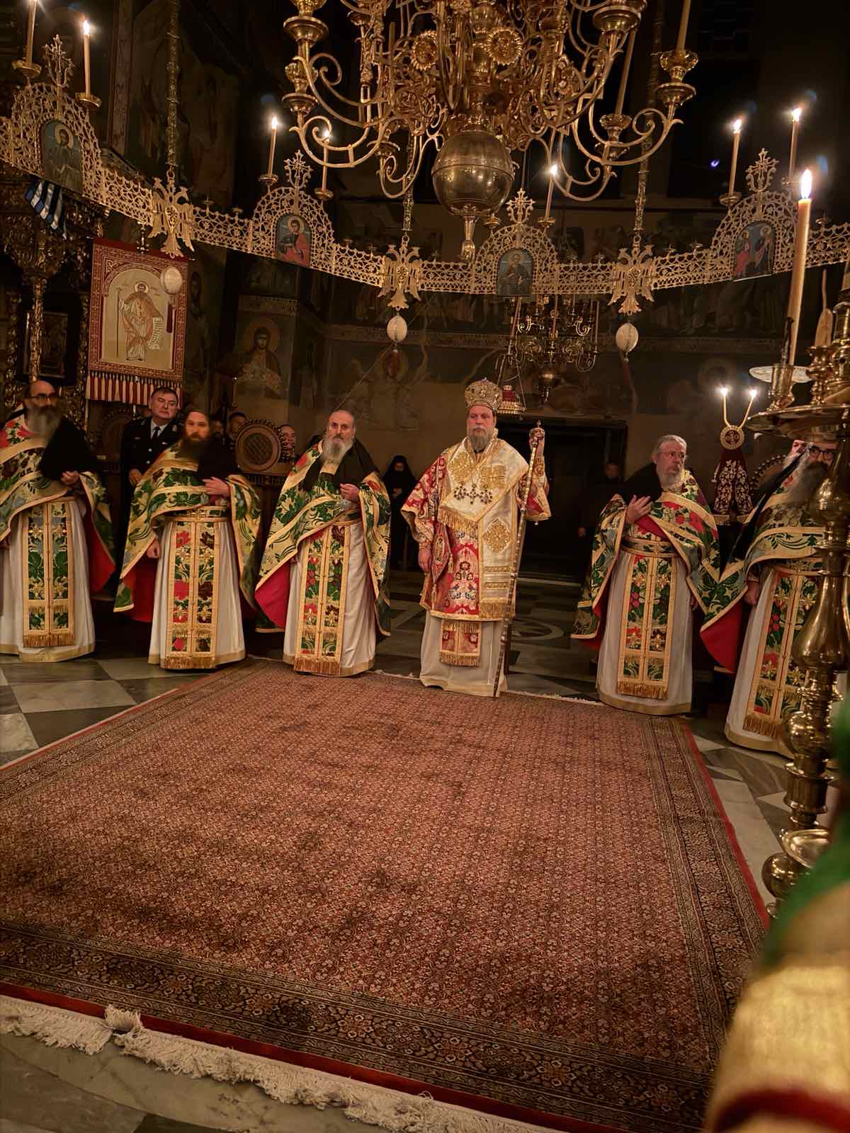 Το εσπέρας της ιδίας ημέρας, ο Σεβασμιώτατος προέστη της Πανηγυρικής Ιεράς Αγρυπνίας, η οποία τελέσθηκε στον ιστορικό Ναό του Πρωτάτου στις Καρυές του Αγίου ‘Ορους, παρουσία του Πρωτεπιστάτου του Αγίου Όρους Γέροντος Αβράαμ του Λαυριώτου, εκπροσώπων της Ιεράς Κονότητος, του Πολιτικού Διοικητή του Αγίου Όρους κ. Αλκιβιάδη Στεφανή, πολλών μοναχών και πλήθους προσκυνητών.