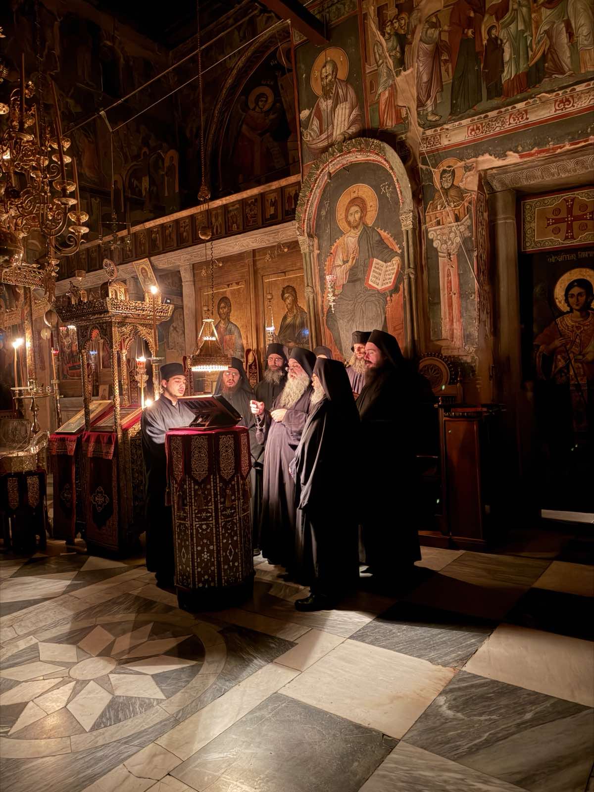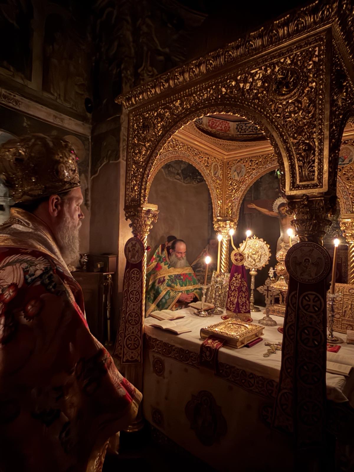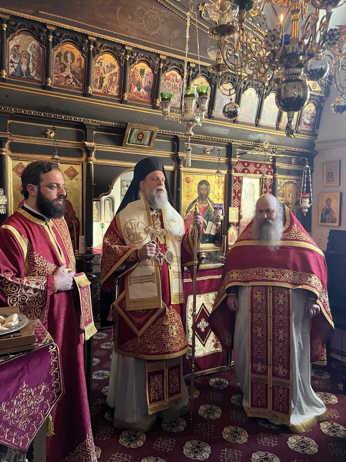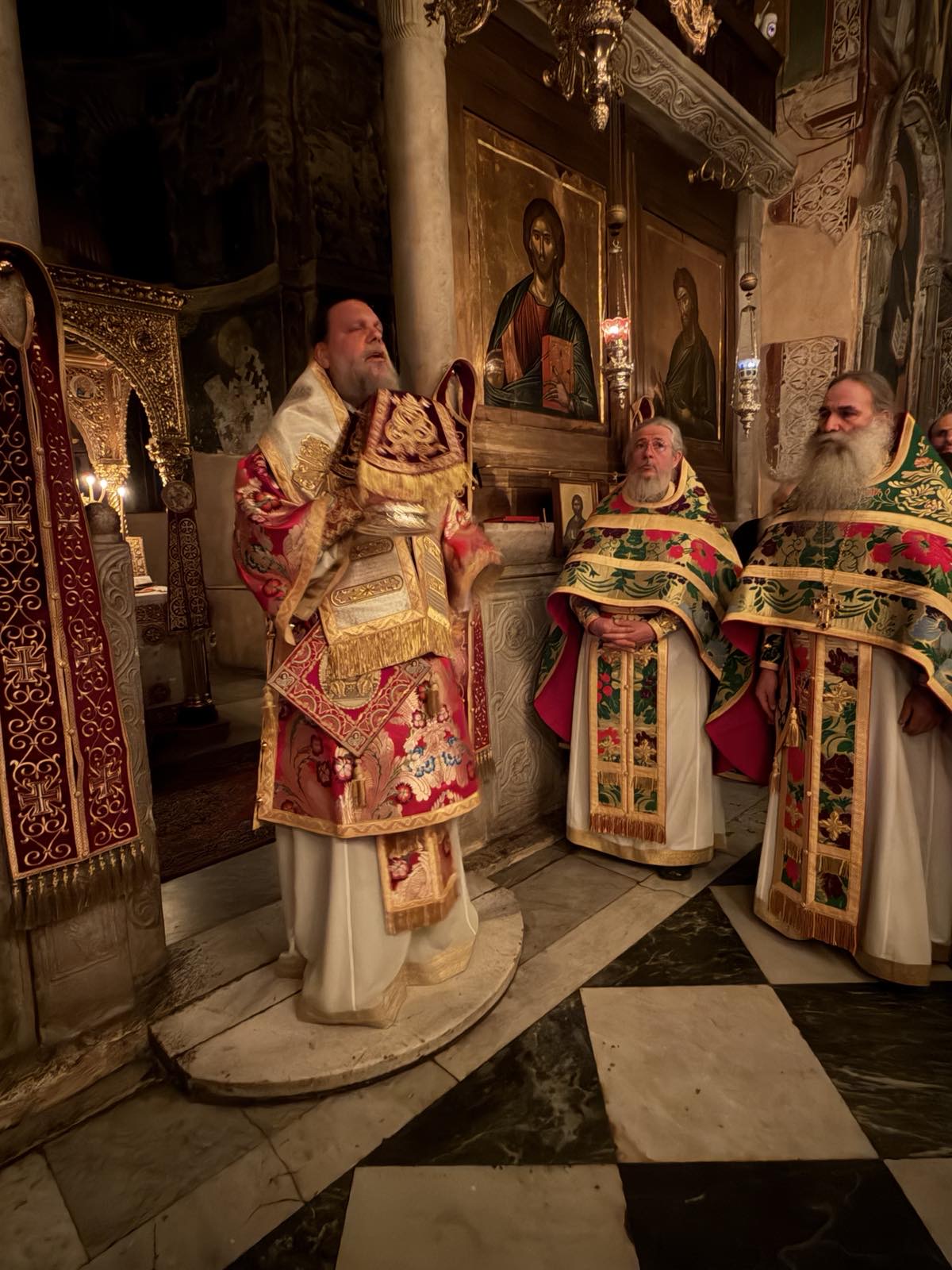 Το εσπέρας της ιδίας ημέρας, ο Σεβασμιώτατος προέστη της Πανηγυρικής Ιεράς Αγρυπνίας, η οποία τελέσθηκε στον ιστορικό Ναό του Πρωτάτου στις Καρυές του Αγίου ‘Ορους, παρουσία του Πρωτεπιστάτου του Αγίου Όρους Γέροντος Αβράαμ του Λαυριώτου, εκπροσώπων της Ιεράς Κονότητος, του Πολιτικού Διοικητή του Αγίου Όρους κ. Αλκιβιάδη Στεφανή, πολλών μοναχών και πλήθους προσκυνητών.