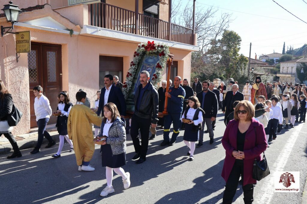 Ακολούθησε, σε κατανυκτικό κλίμα, η καθιερωμένη από το 1921 λιτάνευση της Ιερής Εικόνας του Αγίου Σπυρίδωνος στους κεντρικούς δρόμους του Μυστρά, υπό τους παιανισμούς της Φιλαρμονικής του Δ. Σπάρτης, της οποίας ο Άγιος Σπυρίδωνας είναι και προστάτης.