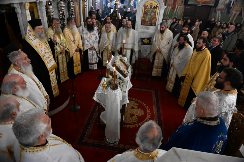 Προ του «Δι’ ευχών», ο Σεβασμιώτατος απηύθυνε προς το πολυπληθές εκκλησίασμα πατρικές ευχές, επικαλούμενος την ευλογία και την πρεσβεία του Αγίου Νικολάου του Πλανά επί πάντας.
