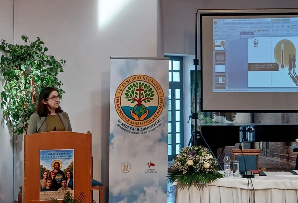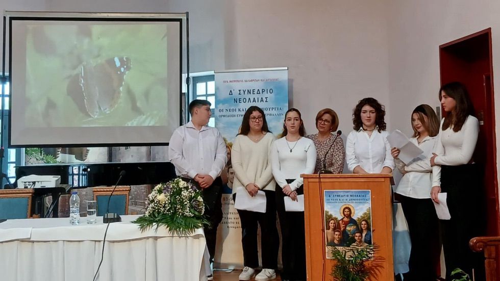 Ιδιαίτερο δε ενδιαφέρον προκάλεσε η εισήγηση που παρουσίασε το 4ο Γυμνάσιο Αιγίου με τίτλο “Ορθοδοξία και περιβάλλον: Από τον λόγο στην πράξη – Το παράδειγμα του «Πράσινου Πατριάρχη»”, αφιερωμένη στον Παναγιώτατο Οικουμενικό Πατριάρχη κ. Βαρθολομαίο.