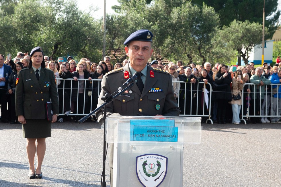 Με την παρουσία πλήθους κόσμου, τελέσθηκε το πρωί της Παρασκευής 28 Νοεμβρίου 2025, στο Στρατόπεδο «ΠΑΠΑΦΛΕΣΣΑΣ», της Καλαμάτας, η τελετή ορκωμοσίας των 1.014 νεοσυλλέκτων στρατιωτών της ΣΤ’ ΕΣΣΟ 2025. Την ορκωμοσία τέλεσε ο Σεβ. Μητροπολίτης Μεσσηνίας κ. Χρυσόστομος, πλαισιωμένος από τον Πρωτοσύγκελλο της Ιεράς Μητροπόλεως Αρχιμ. Φίλιππο Χαμαργιά, τον Πρωτοπρεσβύτερο Γεώργιο Σχοινά, ο οποίος με συγκίνηση συμμετείχε στην ορκωμοσία του υιού του και τον Διάκονο Θεόφιλο Κυριάκο, ενώ τους ύμνους απέδωσε ο γνωστός λαογράφος και λάτρης της βυζαντινής μουσικής κ. Παναγιώτης Μυλωνάς. Τον Αρχηγό του ΓΕΣ, μεταφέροντας και μήνυμα του, εκπροσώπησε ο Διοικητής ΑΣΔΥΣ/ΔΙΣΕ Ταξίαρχος (ΤΧ) Αθανάσιος Στέκος, ενώ την ημερήσια διάταξη ανέγνωσε ο Διοικητής του 9ου Σ.Π. Συνταγματάρχης (ΠΖ) κ. Γεώργιος Χαρίτος. Στην Τελετή παρέστησαν επίσης ο Πρόεδρος του Δημ. Συμβουλίου Καλαμάτας κ. Αναστάσιος Ηλιόπουλος εκπροσωπώντας τον Δήμαρχο Καλαμάτας, η Αντιπεριφερειάρχης Κοινωνικής Αλληλεγγύης και Αρωγής κ. Μαρία Οικονομάκου και εκπρόσωποι των Σωμάτων Ασφαλείας, των Ενώσεων Αποστράτων Αξιωμάτων και λοιπών φορέων.