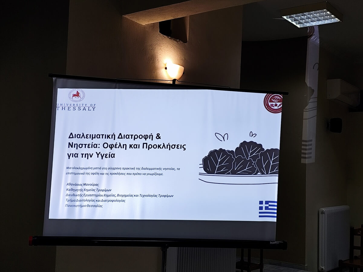 Ακολούθως, στο Πνευματικό Κέντρο του Ιερού Ναού, που βρίσκεται κάτωθεν αυτού, πραγματοποιήθηκε η 5η κατά σειρά επιστημονική διάλεξη – συζήτηση, με θέμα «Διαλειμματική διατροφή, νηστεία και οφέλη για την υγεία», με εισηγητή τον κ. Αθανάσιο Μανούρα, Καθηγητή και Πρόεδρο του Τμήματος Διατροφής και Διαιτολογίας του Πανεπιστημίου Θεσσαλίας.