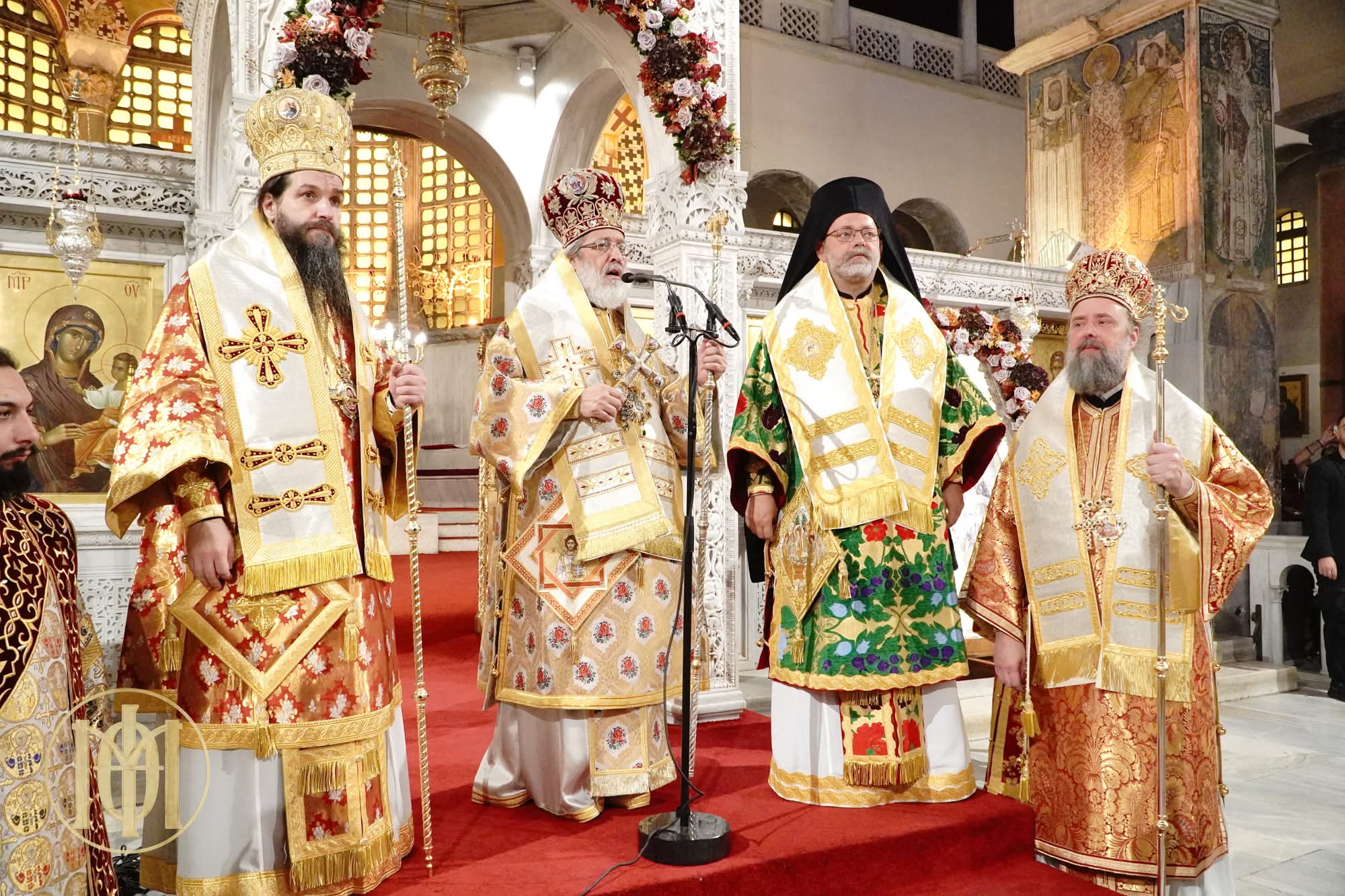 Προ της απολύσεως, ο ιερουργών Αρχιερέας, ευχαρίστησε εκ βάθους καρδίας τον Ποιμενάρχη μας, για την σημερινή συμμετοχή τόσο του ιδίου, όσο και των άλλων Αρχιερέων στην λαμπρή συλλειτουργία.
