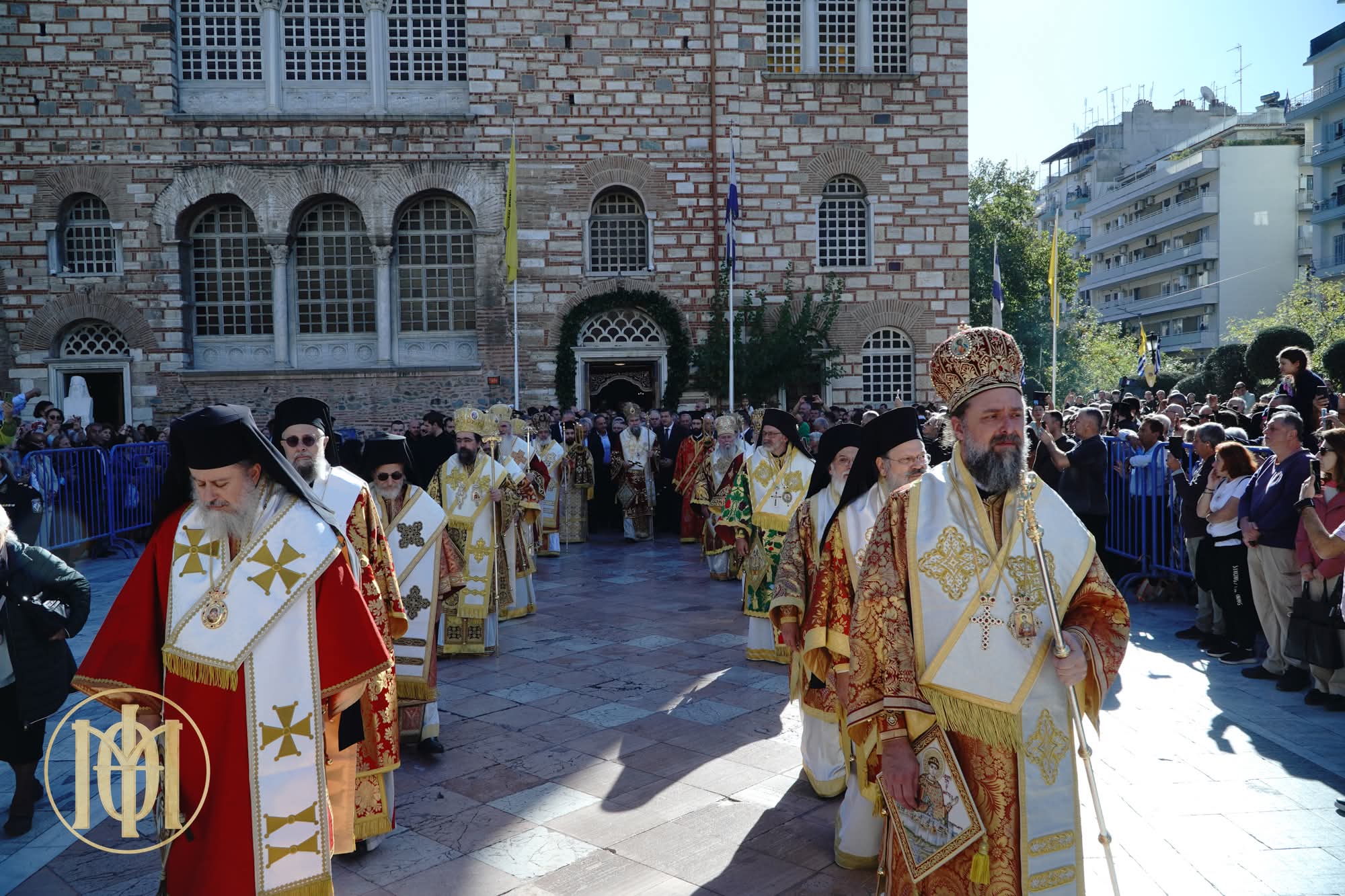 Ο μεγαλοπρεπής Ιερός Ναός του Πολιούχου μας γέμισε με πλήθος Θεσσαλονικέων αλλά και πολλούς προσκυνητές από πολλές περιοχές της Ελλάδος αλλά και από τις γειτονικές χώρες, οι οποίοι προσήλθαν προκειμένου να τιμήσουν τον μεγαλομάρτυρα Άγιο, τον ακοίμητο φρουρό της πόλης και να λάβουν την χάρη του και τις ικετευτικές του πρεσβείες.