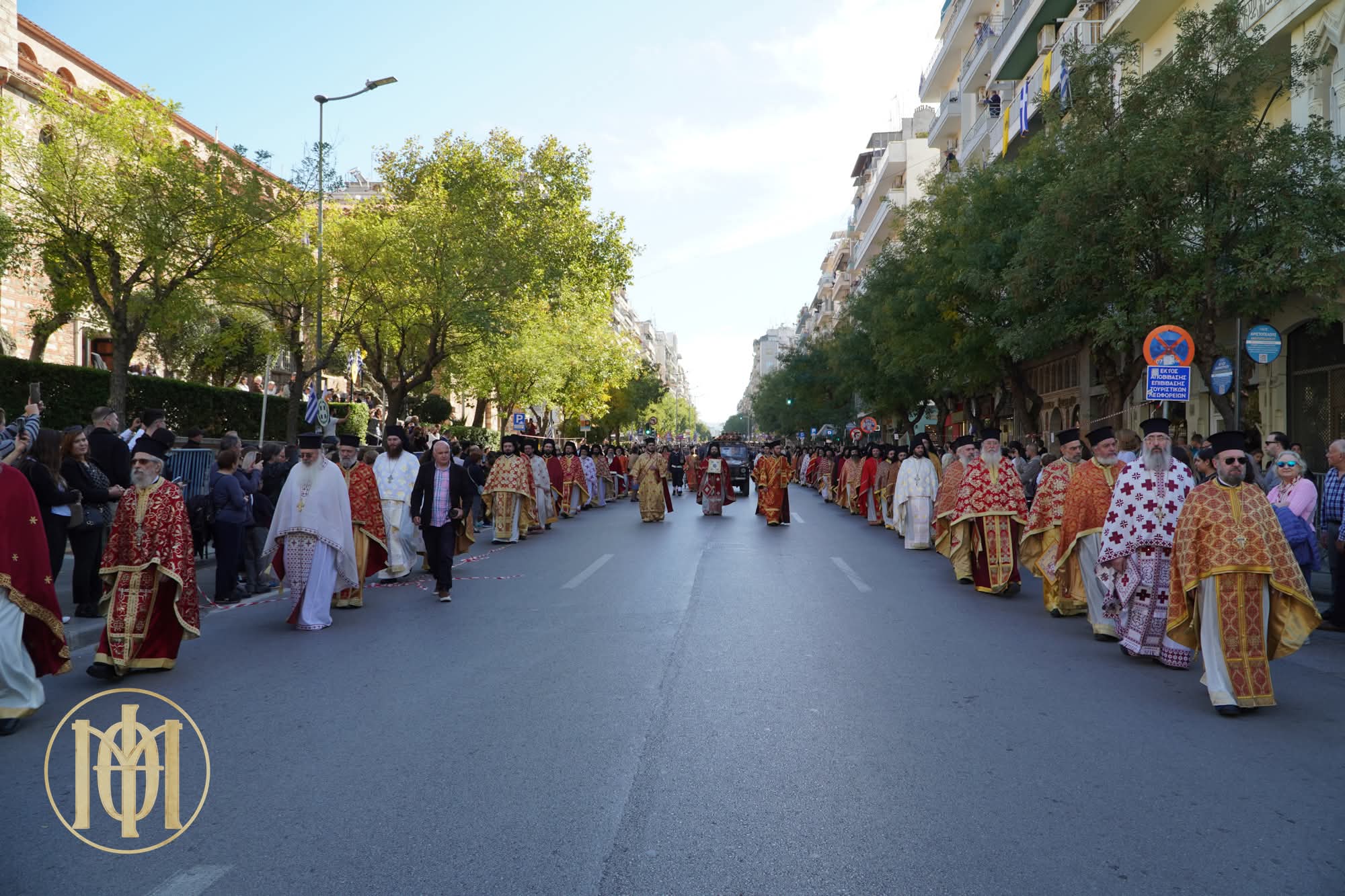 Η λιτανεία διήλθε τους κεντρικούς δρόμους στη Θεσσαλονίκης, όπου χιλιάδες προσκυνητές, αγήματα των Ενόπλων Δυνάμεων, μικροί μαθητές αλλά και μέλη χορευτικών συλλόγων με παραδοσιακές φορεσιές, συνόδευσαν την πομπή.