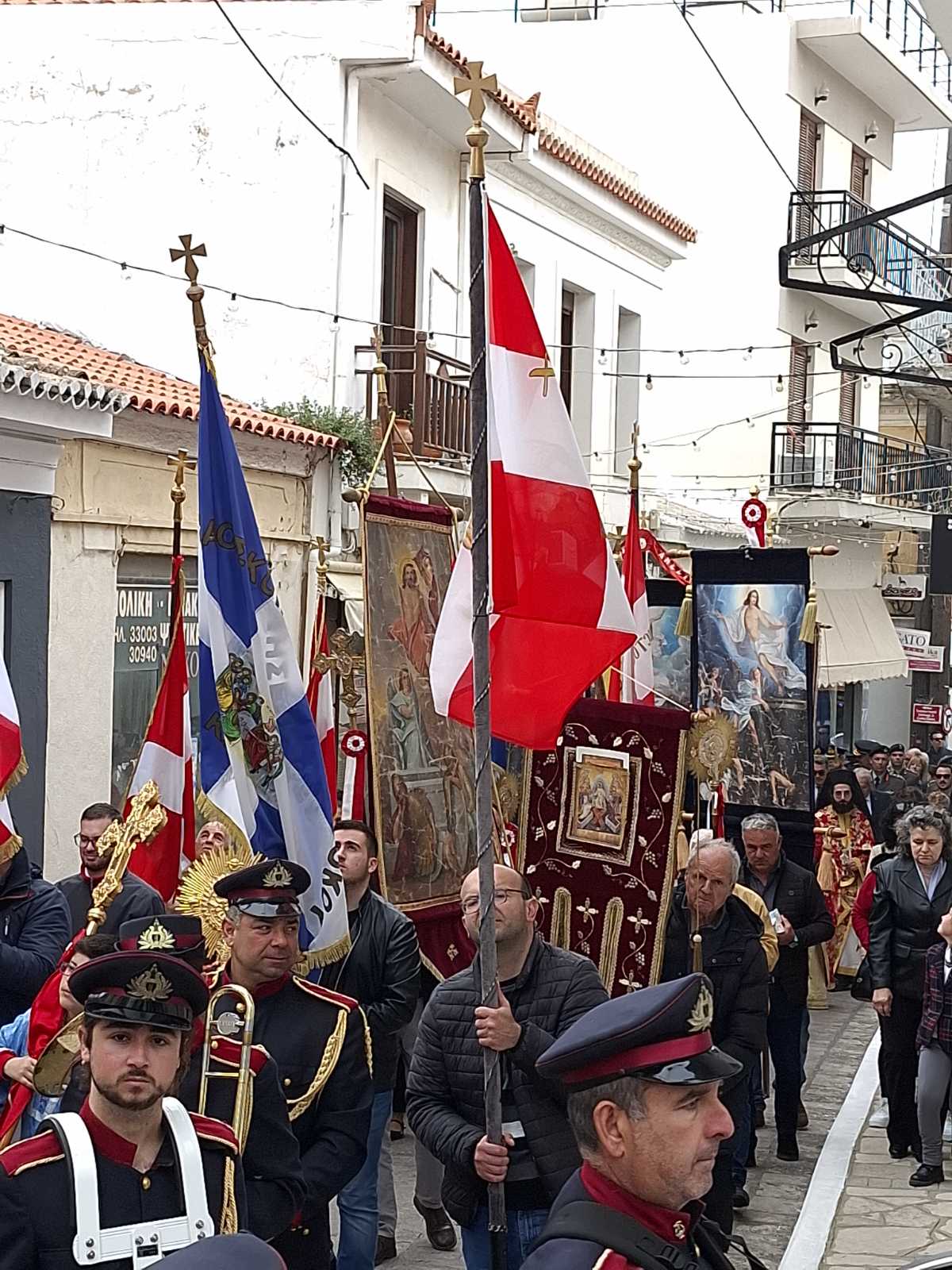 Τὴν ἱερὰ πομπὴ παιάνιζε ἡ Φιλαρμονικὴ τοῦ Δήμου Δυτικῆς Σάμου «Κλεάνθης ὁ Σάμιος», προσδίδοντας ἰδιαίτερη λαμπρότητα.