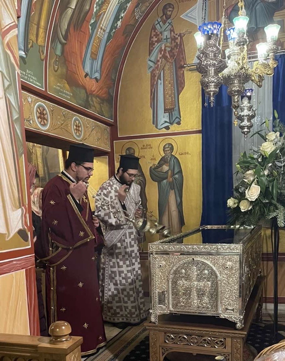 Με εκκλησιαστική λαμπρότητα τελέσθηκε την Κυριακή 14 Δεκεμβρίου 2025 ο Μέγας Πανηγυρικός Εσπερινός της εορτής του Αγίου ενδόξου Ιερομάρτυρος Ελευθερίου, Επισκόπου Ιλλυρικού, στον Ιερό Ναό Κοιμήσεως της Θεοτόκου πόλεως Νέας Ιωνίας, ενώπιον του ιερού σκηνώματος του Αγίου Ελευθερίου.