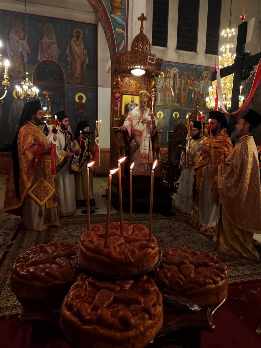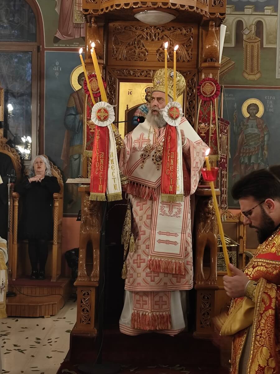 Της ιεράς ακολουθίας προεξήρχε ο Σεβασμιώτατος Μητροπολίτης μας κ. Τιμόθεος, πλαισιούμενος από κληρικούς της Ιεράς Μητροπόλεως, προσδίδοντας με την παρουσία του ιδιαίτερη πνευματική βαρύτητα στην πανηγυρική αυτή σύναξη.