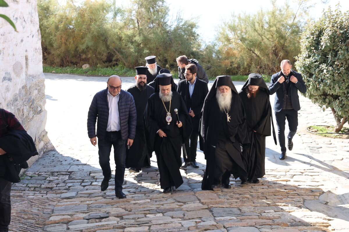 Την συνοδεία του απετέλεσαν ο αξιότιμος κ. Αριστοτέλης Σπάνιας, Βουλευτής Καρδίτσης, ο Πανοσιολογιώτατος Αρχιμανδρίτης π. Κυριακός Τσολάκης, Ιεροκήρυξ της Ιεράς μας Μητροπόλεως, ο Αιδεσιμολογιώτατος Πρωτοπρεσβύτερος π. Θωμάς Κάιας, Γενικός Αρχιερατικός Επίτροπος της Ιεράς μας Μητροπόλεως, ο Ιερολογιώτατος Αρχιδιάκονος της Ιεράς μας Μητροπόλεως π. Δαμιανός Μπαρούτας και οι κ. Παναγιώτης Μπαλατσός, Ανδρέας Ζαχαρής και Αθανάσιος Νιαβής.