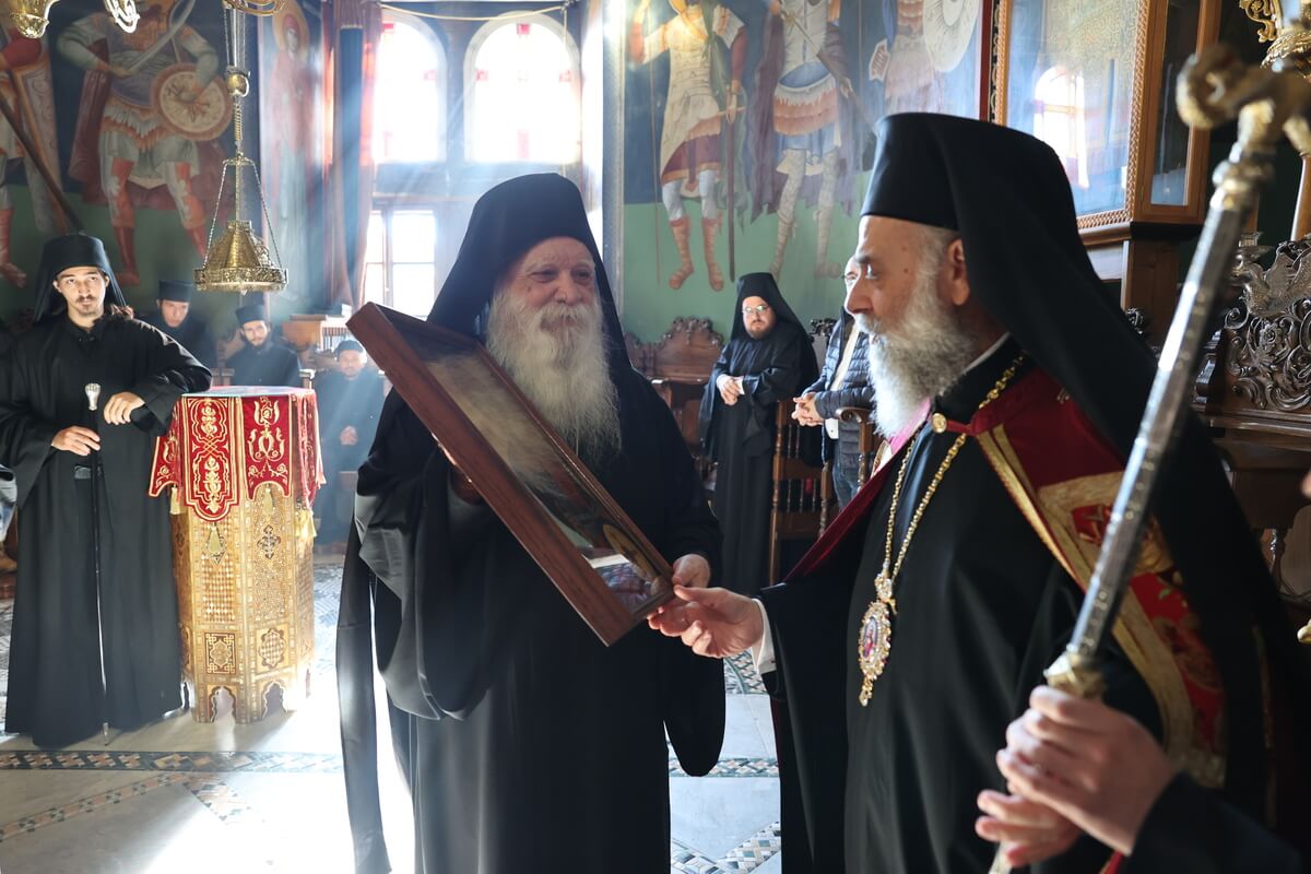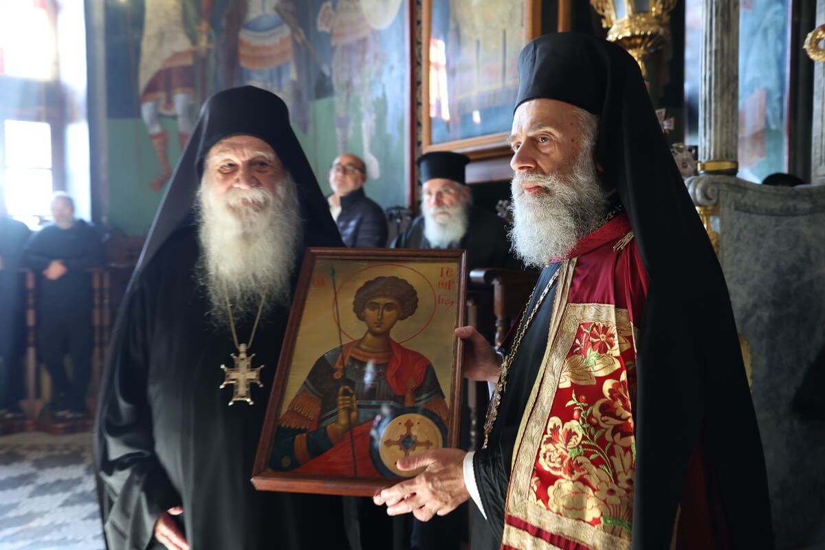 Κατόπιν προσκλήσεως του Πανοσιολογιωτάτου Αρχιμανδρίτου Γέροντος Αλεξίου, Καθηγουμένου της Ιεράς Μονής Ξενοφώντος Αγίου Όρους και πατριαρχικής αδείας και ευλογίας του Παναγιωτάτου Οικουμενικού Πατριάρχου κ. Βαρθολομαίου ο Σεβασμιώτατος Μητροπολίτης μας κ. Τιμόθεος μετέβη, το Σάββατο 15 Νοεμβρίου 2025, στο Αγιώνυμο Όρος και συγκεκριμένα στην Ιερά Μονή του Ξενοφώντος, όπου παρέστη στην πανήγυρη αυτής, επί τη εορτή της ανακομιδής του ιερού λειψάνου του αγίου μεγαλομάρτυρος Γεωργίου του τροπαιοφόρου και κατάθεσης αυτού στη Λήδα.