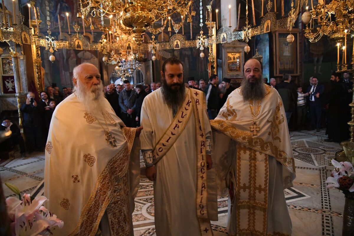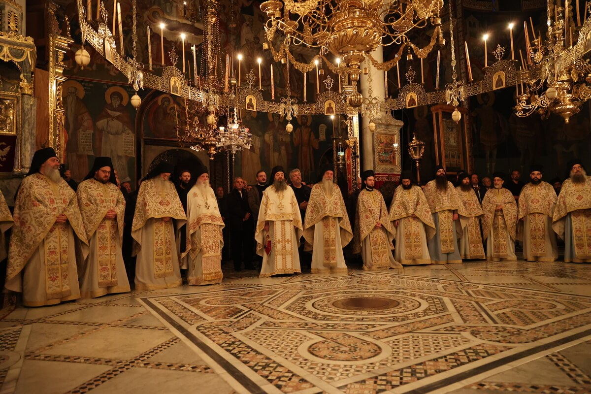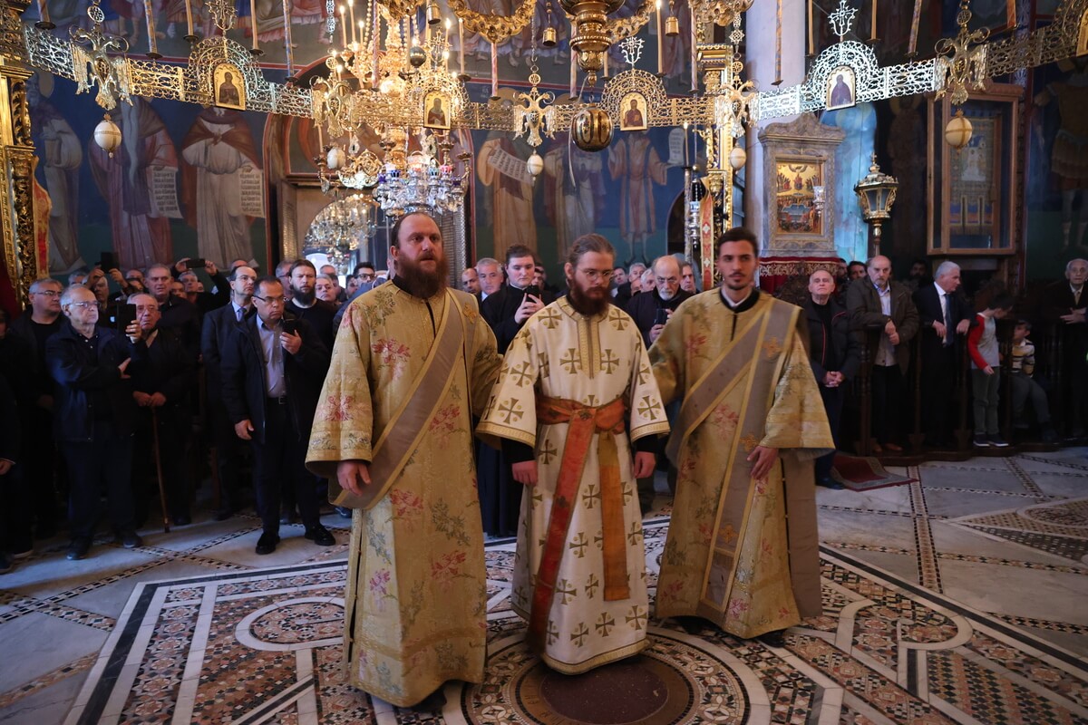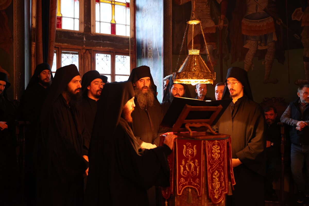 Στην Παννυχίδα, που ξεκίνησε στις 6:00΄μ.μ., χοροστάτησε ο Σεβασμιώτατος Μητροπολίτης Σιδηροκάστρου συγχοροστατούντος του Σεβασμιωτάτου Μητροπολίτου μας, και μετείχαν οι Καθηγούμενοι Γέροντας Αλέξιος (Ι.Μ. Ξενοφώντος), Γέροντας Γαβριήλ (Ι.Μ. Παντοκράτορος), ο Πανοσιολογιώτατος Αρχιμανδρίτης Φιλάδελφος Καφαλής, Πρωτοσύγκελλος της Ιεράς Μητροπόλεως Βελγίου, ο Καθηγούμενος της Ι. Μ. Φανερωμένης Λευκάδος Αρχιμ. Νικηφόρος και πλειάδα Ιερομονάχων, Ιερέων και Διακόνων.