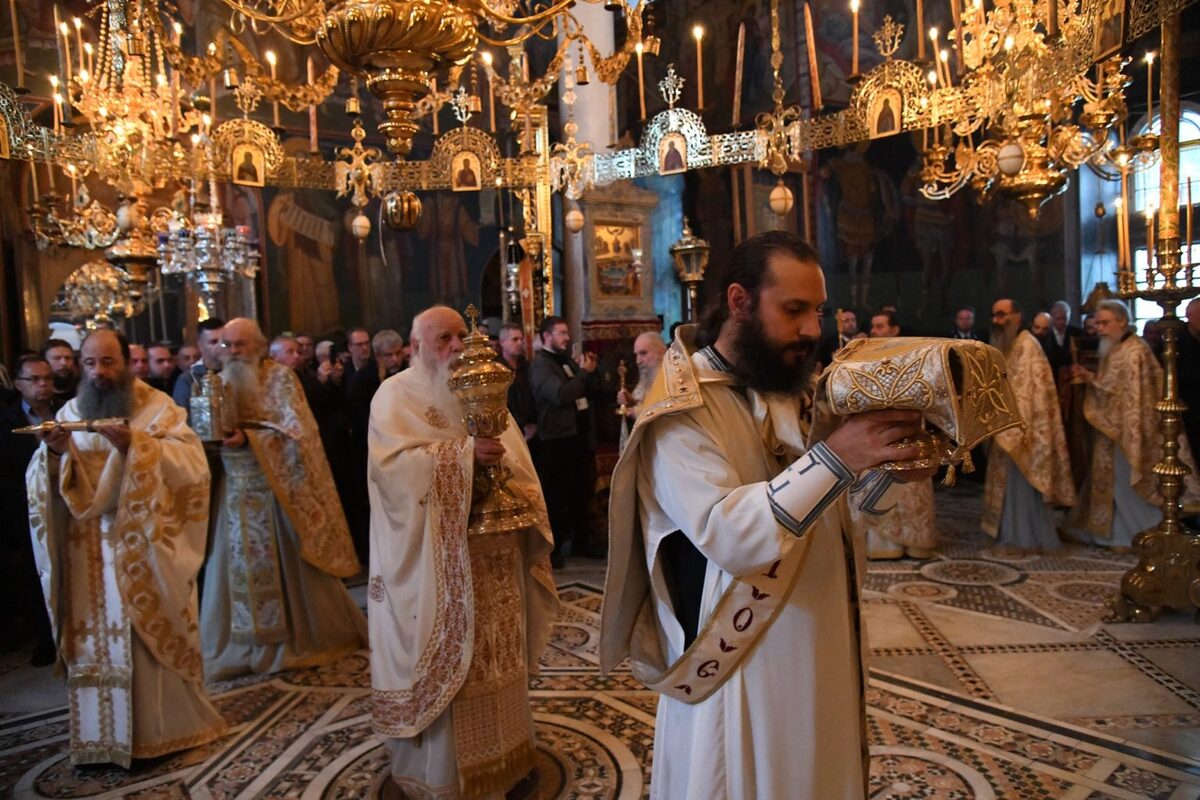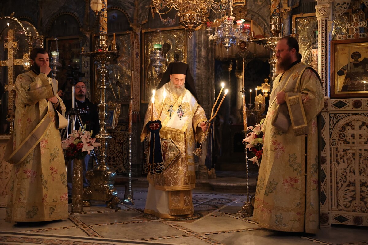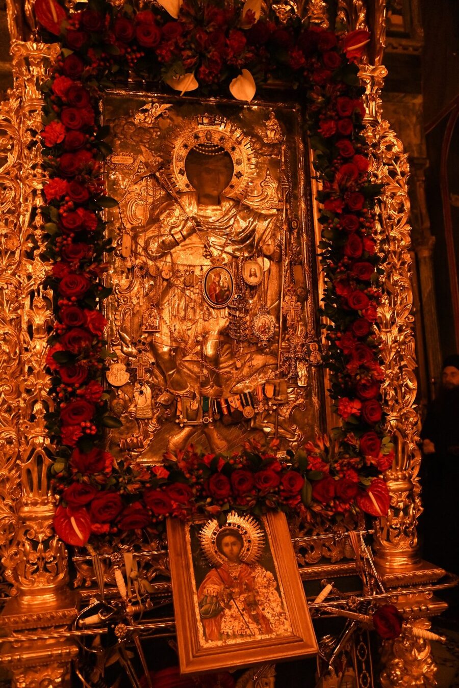 Στην Παννυχίδα, που ξεκίνησε στις 6:00΄μ.μ., χοροστάτησε ο Σεβασμιώτατος Μητροπολίτης Σιδηροκάστρου συγχοροστατούντος του Σεβασμιωτάτου Μητροπολίτου μας, και μετείχαν οι Καθηγούμενοι Γέροντας Αλέξιος (Ι.Μ. Ξενοφώντος), Γέροντας Γαβριήλ (Ι.Μ. Παντοκράτορος), ο Πανοσιολογιώτατος Αρχιμανδρίτης Φιλάδελφος Καφαλής, Πρωτοσύγκελλος της Ιεράς Μητροπόλεως Βελγίου, ο Καθηγούμενος της Ι. Μ. Φανερωμένης Λευκάδος Αρχιμ. Νικηφόρος και πλειάδα Ιερομονάχων, Ιερέων και Διακόνων.