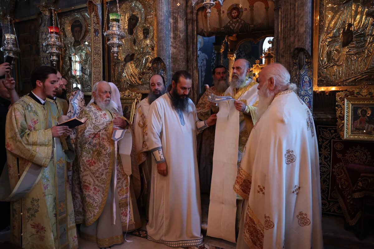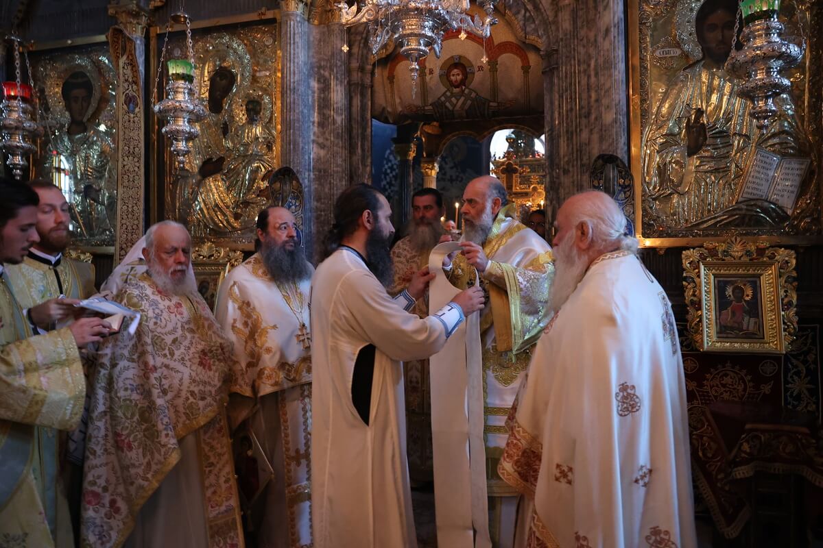 Το πρωί, τελέσθηκε η Θεία Λειτουργία με Αρχιερατικό Συλλείτουργο των δύο Αρχιερέων. Κατά τη διάρκεια της Θείας Λειτουργίας, τελέσθηκαν οι χειροτονίες δύο αδελφών της Ιεράς Μονής, οι οποίοι τυγχάνουν να είναι συντοπίτες μας.