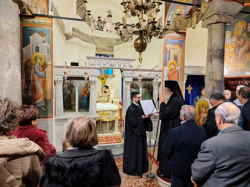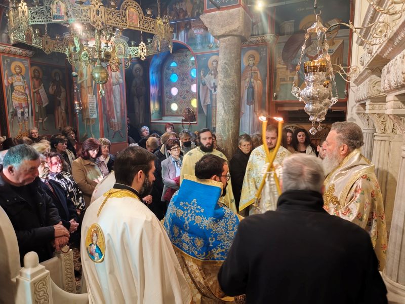 Την Τετάρτη 14 Ιανουαρίου το βράδυ ετελέσθη ο Μέγας Πανηγυρικός Εσπερινός, στον οποίο χοροστάτησε ο Θεοφιλέστατος Επίσκοπος Σκιάθου κ. Ιωάννης-Αρχιγραμματεύς της Ιεράς Συνόδου της Εκκλησίας της Ελλάδος.