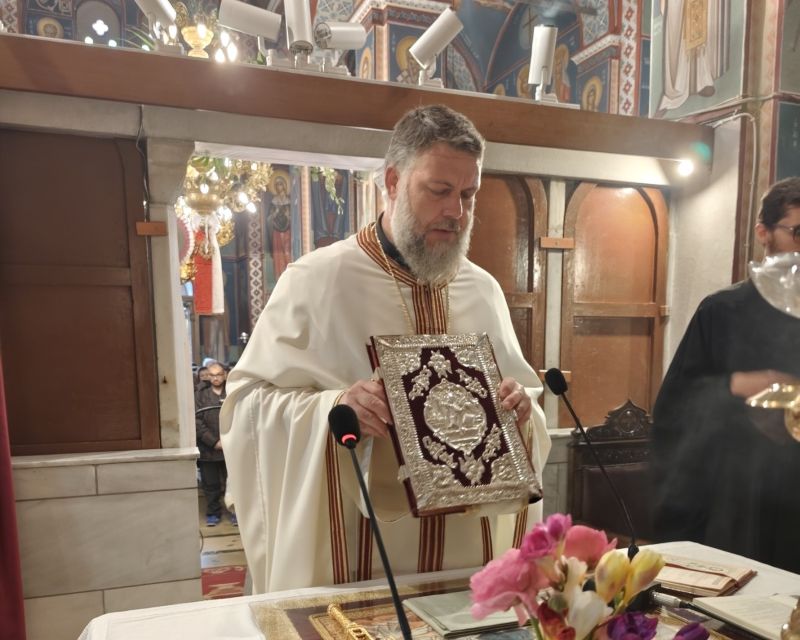 Το εσπέρας της Πέμπτης 16 Απριλίου 2026 τελέσθηκε ο Πανηγυρικός Αναστάσιμος Εσπερινός, στον οποίο προεξήρχε και κήρυξε τον θείο λόγο ο Σεβασμιώτατος Ποιμενάρχης μας, Μητροπολίτης Χαλκίδος κ. Χρυσόστομος, συμπαρισταμένων Κληρικών της Αρχιερατικής Περιφερείας Χαλκίδος και των περιχώρων, του ιερομονάχου Ειρηναίου Σταμέλου-εφημερίου του πανηγυρίζοντος Ι. Ναού και υποδιευθυντή του Ιδρύματος και ευσεβών πιστών, εντός και εκτός του Ιερού Ναού, στον προαύλιο χώρο του Ιδρύματος, αφού η Πανήγυρις αυτή αποτελεί πόλο έλξης πολλών Χαλκιδέων.
