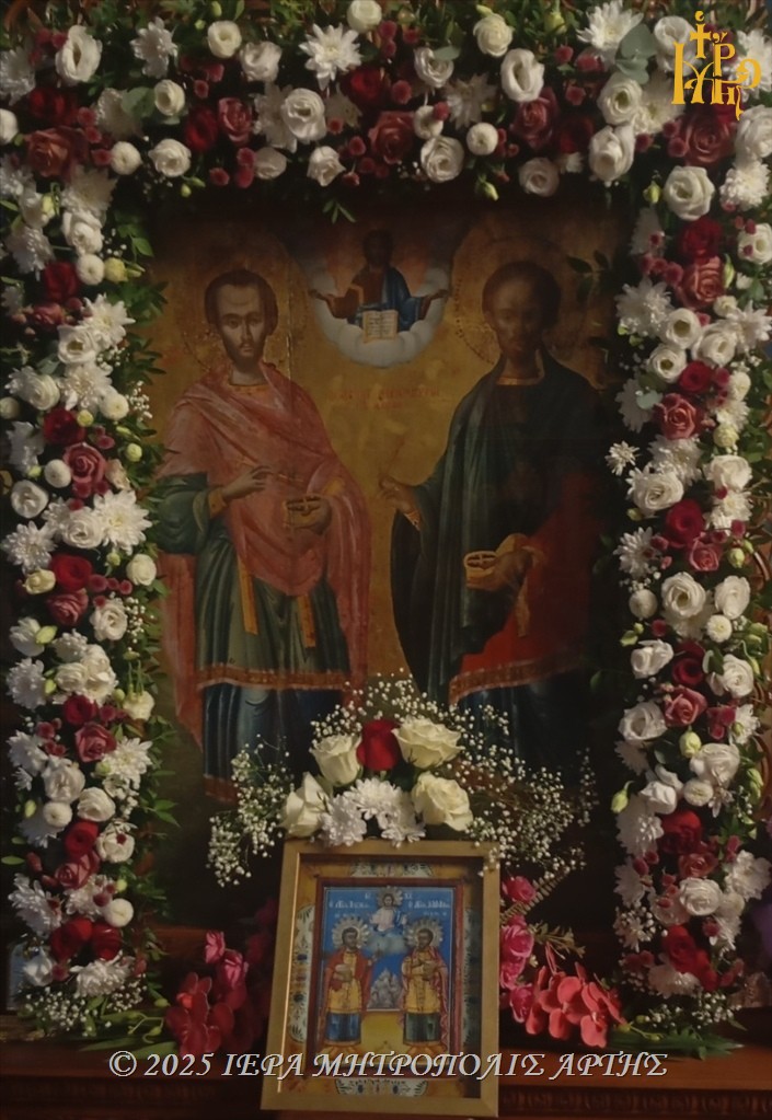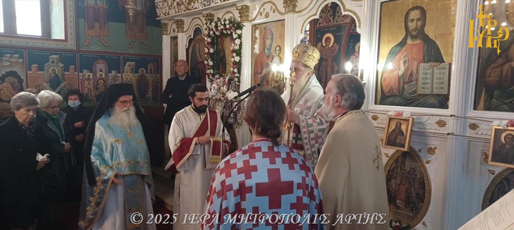 Το πρωί του Σαββάτου, 1ης Νοεμβρίου 2025, στο πανηγυρίζον Ιερό Μετόχιο των Αγίων Αναργύρων στην Άρτα, που ανήκει στην Αγιορειτική Ιερά Μονή Οσίου Γρηγορίου, ετελέσθη με πνευματική κατάνυξη Θεία Λειτουργία, προεξάρχοντος του Σεβασμιωτάτου Μητροπολίτου Άρτης κ. Καλλινίκου.