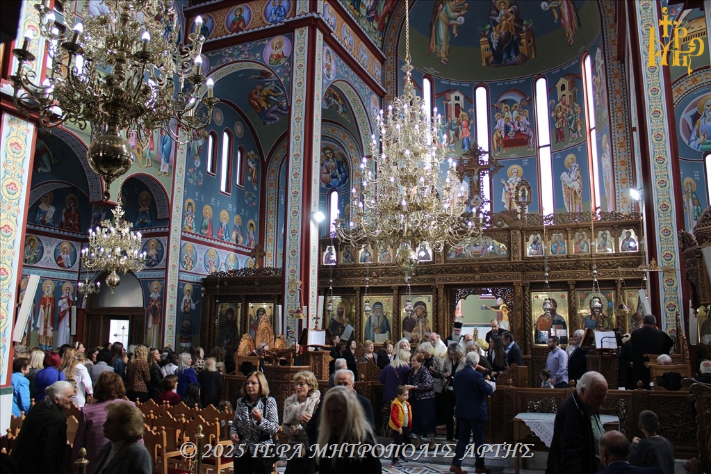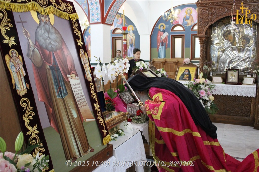 Ο Ιερός Ναός, κατεκλύσθη από πιστούς και πλημμύρισε από τη χάρη του Αγίου, σε μια πανηγυρική ατμόσφαιρα δοξολογίας και πνευματικής ανατάσεως. Η συμμετοχή του λαού ήταν θερμή και συγκινητική, καθώς οι πιστοί προσήλθαν για να τιμήσουν τον Άγιο που γεννήθηκε στην Άρτα, εκάρη μοναχός στο Άγιον Όρος και με το έργο και τη μαρτυρία του ανεδείχθη σε φωτιστή του ρωσικού λαού και μεγάλο θεολόγο της Ορθοδοξίας.