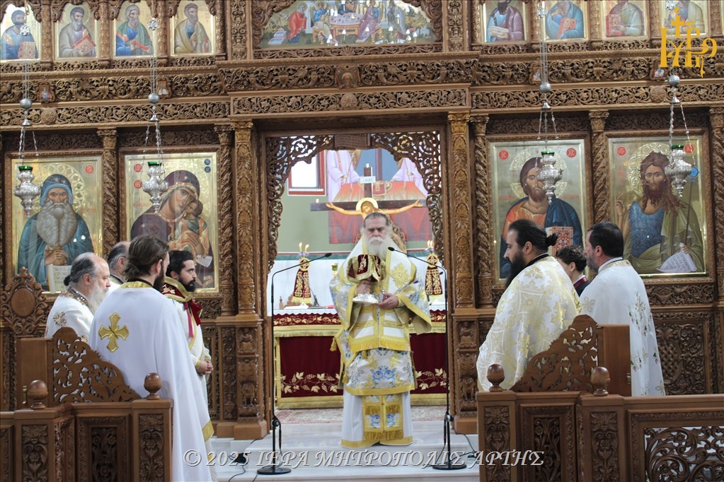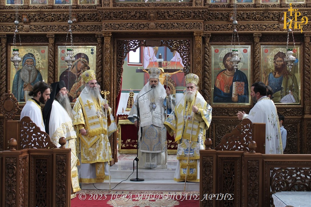 Ο Σεβασμιώτατος Μητροπολίτης Άρτης κ. Καλλίνικος, κλείνοντας τη λατρευτική σύναξη, εξέφρασε θερμές ευχαριστίες προς τους Αγίους Αρχιερείς για την παρουσία και τη συμμετοχή τους στην πανήγυρη, αλλά και προς τον πιστό λαό που με ευλάβεια και πίστη συμμετείχε στις εκδηλώσεις προς τιμήν του Αγίου.