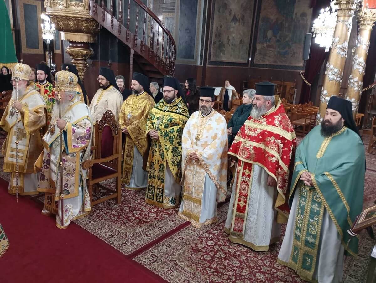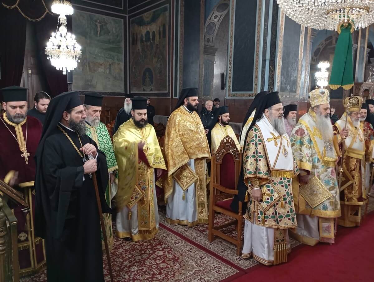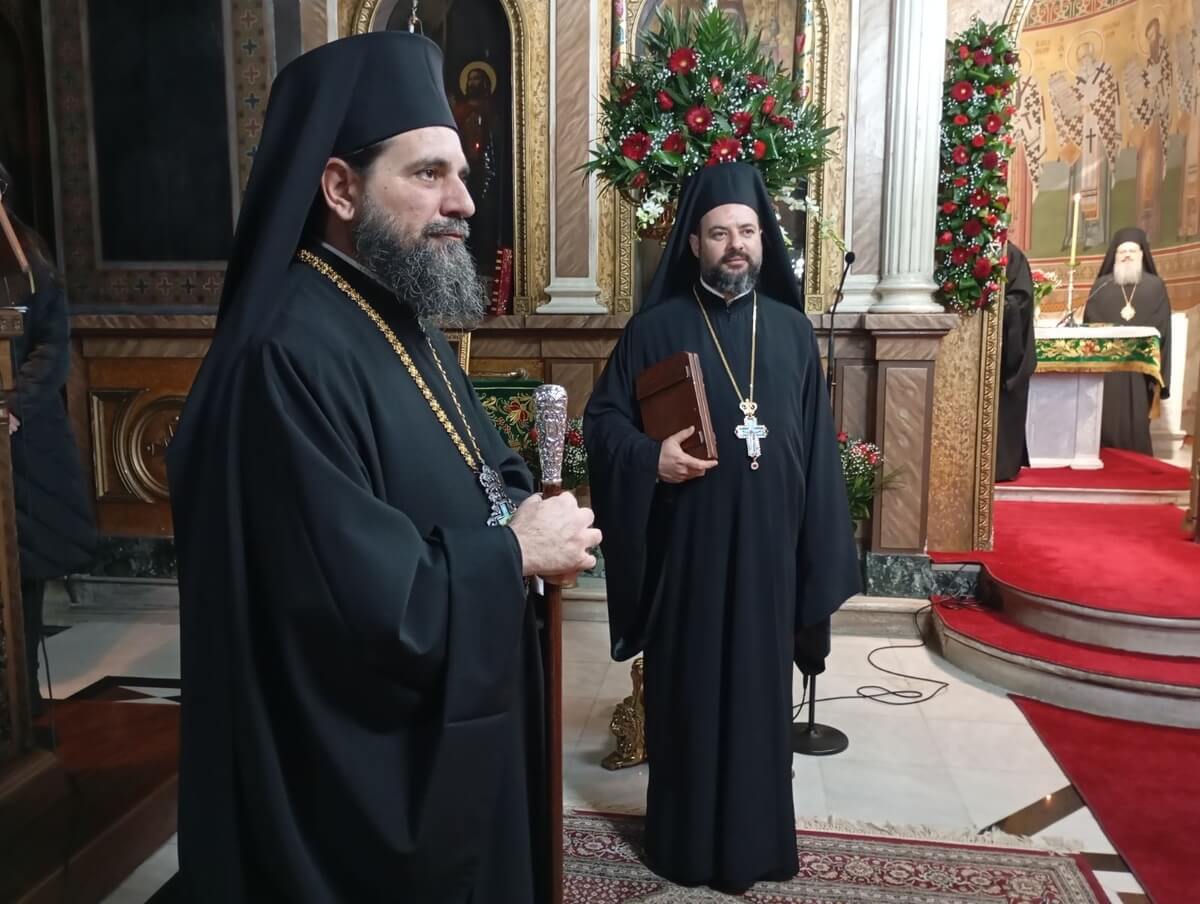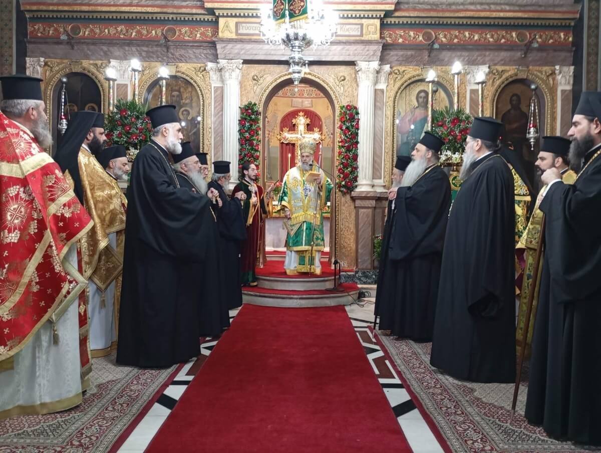 Θέλω να τιμήσουμε και τους Αγίους Αρχιερείς, των οποίων τα σεπτά ονόματα ήδη ανεφέρθησαν, και να τους ευχαριστήσουμε κυρίως γιατί είναι παρόντες και μας ευλόγησαν σήμερα και χθες, τον Επίσκοπο, τον Ιερό Κλήρο και τον ευλογημένο λαό, αλλά και όλους εσάς, που χθες και σήμερα είμαστε εδώ συναγμένοι στον Ιερό Μητροπολιτικό μας Ναό, για να τιμήσουμε τον Άγιο Απόστολο Τιμόθεο και να προσευχηθούμε για τον Επίσκοπο, γιατί έχει ανάγκη πολλής προσευχής, πνευματικής επιστήριξης και ενδυναμώσεως.