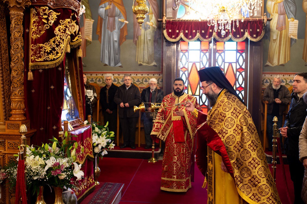 Με την παρουσία πλήθους πιστών, παρά τις αντίξοες καιρικές συνθήκες, τελέσθηκε, το πρωί της Κυριακής 1ης Φεβρουαρίου ε.έ., παραμονή της εορτής της Υπαπαντής, η προεόρτια πανηγυρική Θεία Λειτουργία, στον πανηγυρίζοντα Μητροπολιτικό Ιερό Ναό της Υπαπαντής στην πόλη της Καλαμάτας. Της πανηγυρικής Θείας Λειτουργίας προέστη ο Πρωτοσύγκελλος της Ιεράς Μητροπόλεως Μεσσηνίας Αρχιμ. Φίλιππος Χαμαργιάς, πλαισιωμένος από τους εφημερίους του ναού Πρωτοπρεσβυτέρους Κρεσφόντη Πουλόπουλο και Σωτήριο Τζαϊλέα και τον Διάκον Θεόφιλο Κυριάκο.