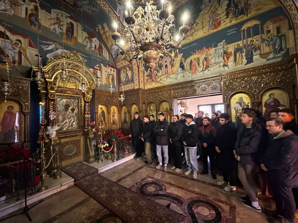 Ενώπιον της Ιεράς Εικόνας τελέστηκε δέηση και ακολούθησε ξενάγηση από τον Αρχιμ. π. Κύριλλο Παλούμπα, ο οποίος μοίρασε στους Φοιτητές αναμνηστικά δώρα.