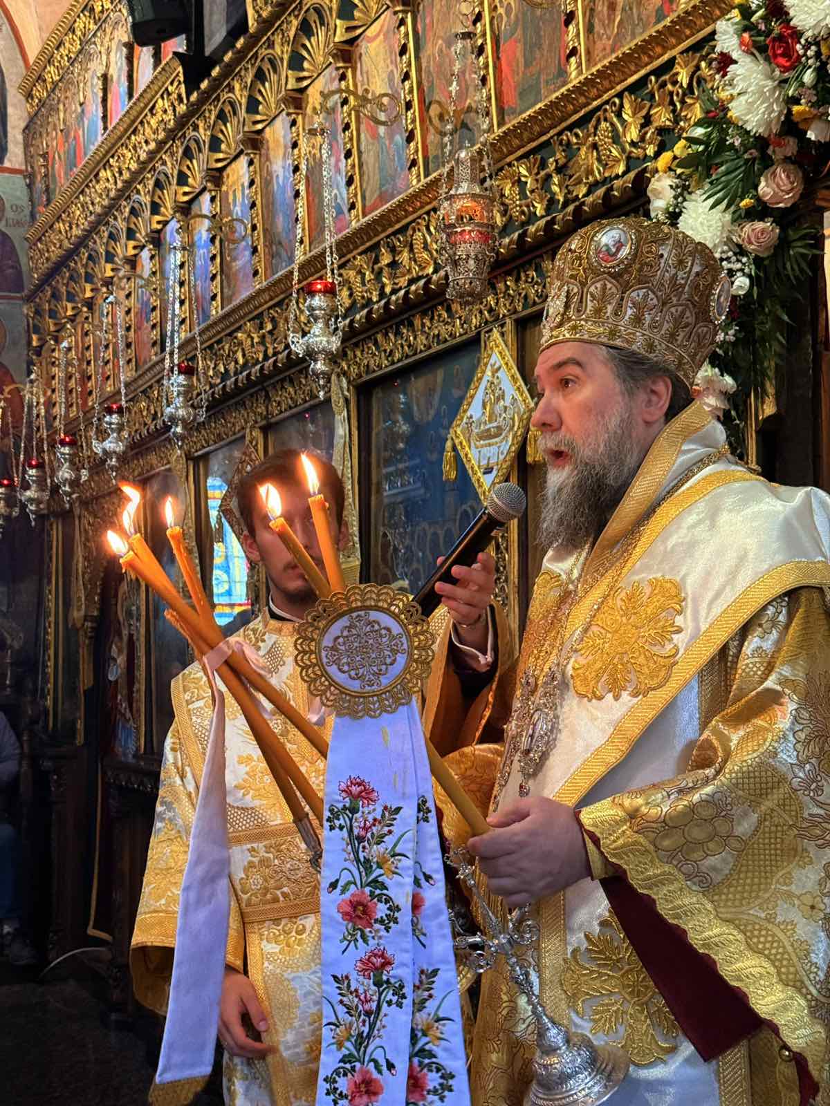 Αφ’ εσπέρας της εορτής, Τρίτη 21 Οκτωβρίου, στην ως είρηται  ιστορική Συνοδική Μονή, που είναι αφιερωμένη στην Κοίμηση της Υπεραγίας Θεοτόκου, το δεύτερο σε αίγλη ορθόδοξο προσκύνημα της Βουλγαρίας, μετά την Μονή της Ρίλας, κτισμένη τον 11ο μ.Χ. αιώνα, στις υπώρειες της Ροδόπης, από τον στρατηγό του βυζαντινού Αυτοκράτορα Αλεξίου Κομνηνού, Γρηγόριο Πακουριανό, όπως μαρτυρούν οι επιγραφές, που σώζονται έως και σήμερα στην ελληνική γλώσσα, τελέσθηκε ο μέγας πανηγυρικός, πολυαρχιερατικός Εσπερινός, χοροστατήσαντος του Θεοφ. Επισκόπου Δραγοβιτίας κ. Βασιλείου, Ηγουμένου της ιεράς Συνοδικής Μονής Τρογιάν, συγχοροστατησάντων του Σεβ. Μητροπολίτου Σερρών και Νιγρίτης κ. Θεολόγου και του Θεοφ. Επισκόπου Βελίκης κ. Σιωνίου.