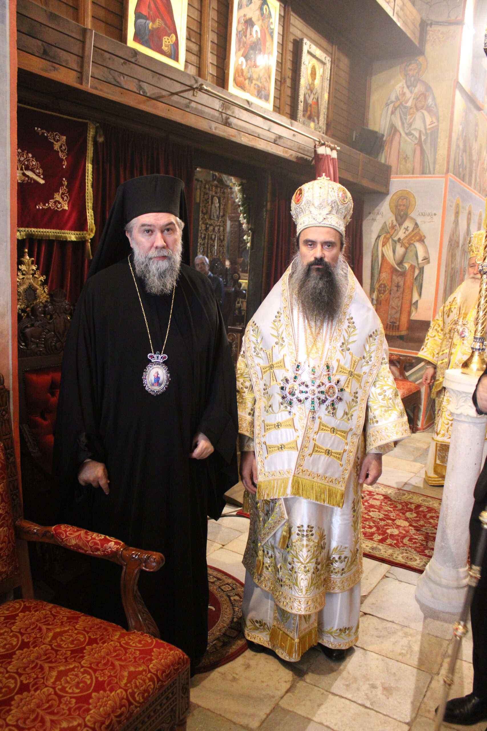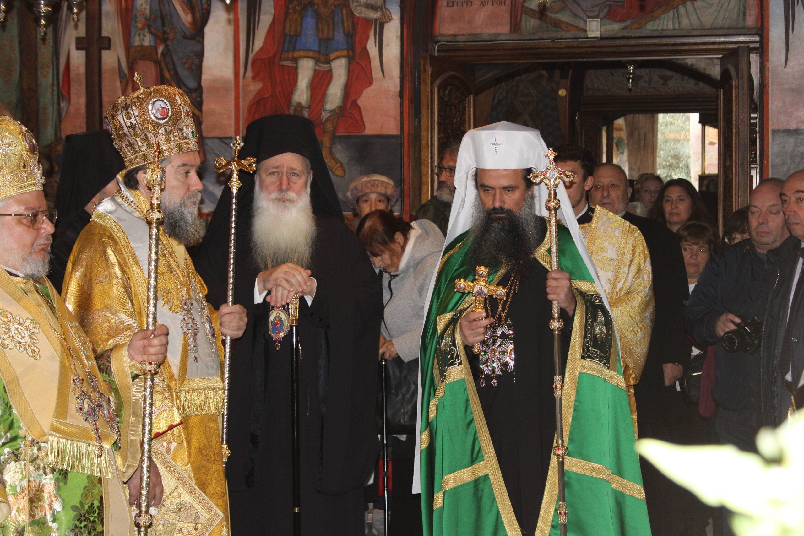 Μετά το πέρας της πανηγυρικής θ. Λειτουργίας, ο Μακ. Πατριάρχης Βουλγαρίας κ. Δανιήλ εξέφρασε με θερμούς λόγους προς τον Σεβ. κ. Θεολόγο, την χαρά και τις ευχαριστίες του για την συλλειτουργική του συμμετοχή στις εφετεινές εορταστικές ακολουθίες της μνήμης του μεγάλου Πατριάρχου της Εκκλησίας της Βουλγαρίας, οσίου Ευθυμίου του θαυματουργού.