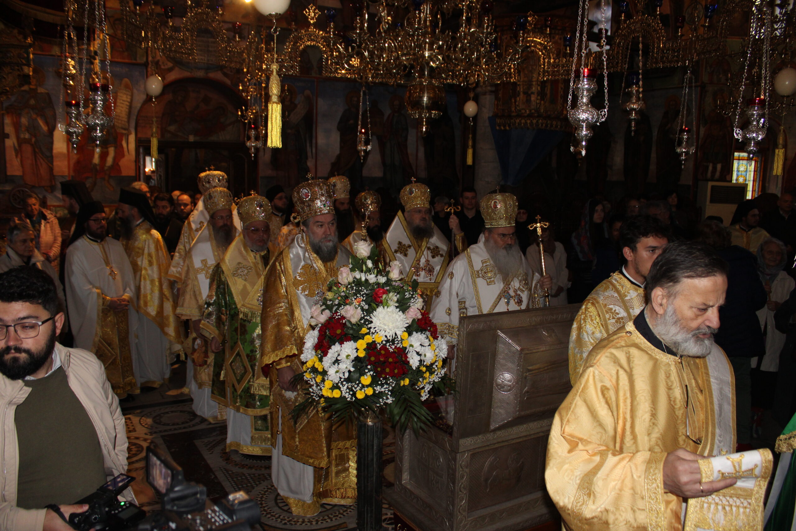Νωρίς το απόγευμα, απόψε, κατακλείοντας το ιερό προσκύνημα, στον δρόμο της επιστροφής προς την Μητροπολιτική του Καθέδρα, ο Σεβασμιώτατος εκόμισε μικρό απότμημα εκ του χαριτοβρύτου λειψάνου του Αγίου ενδόξου μεγαλομάρτυρος Δημητρίου, στον ομώνυμο ιερό Ναό του χωρίου Τερπνή της Σερραϊκής Εκκλησίας, με αφορμή τον επί θύραις λαμπρό εορτασμό του μυροβλύτου Αγίου της Εκκλησίας μας.