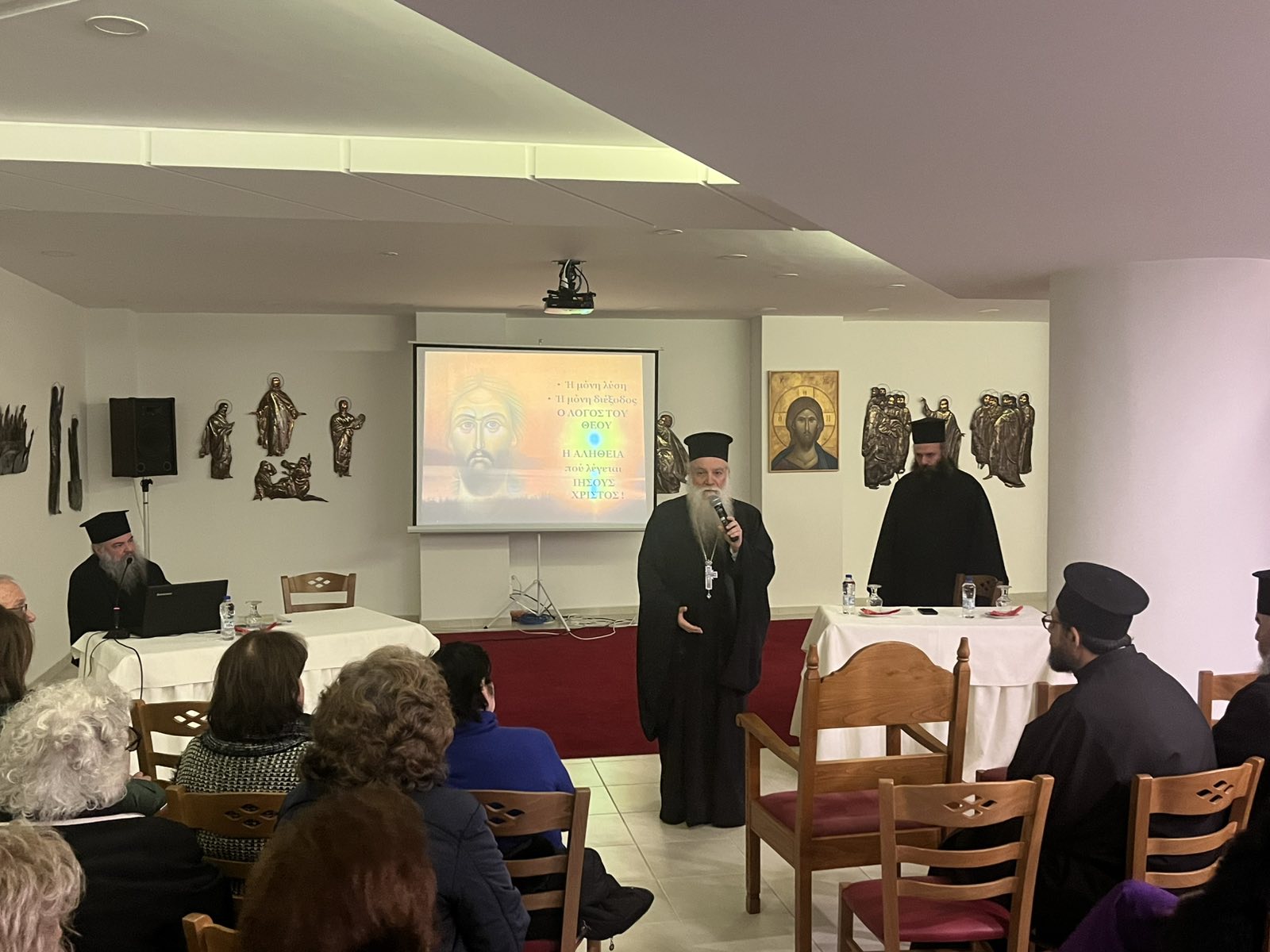 Προσκεκλημένος εισηγητής ήταν Πρωτοπρεσβύτερος π. Ιωάννης Ζώτος, Προϊστάμενος – εφημέριος Ιερού Ναού Οσίων Μετεωριτών Πατέρων Καλαμπάκας, Υπεύθυνος Αντιαιρετικού Αγώνος Ιεράς Μητροπόλεως Σταγών και Μετεώρων , ο οποίος ανέπτυξε με θεολογική εμβρίθεια και ρητορική δεινότητα το θέμα: Από τον Λόγο του Θεού στην α-λογία των ανθρώπων: Αιρέσεις και Παραθρησκείες”