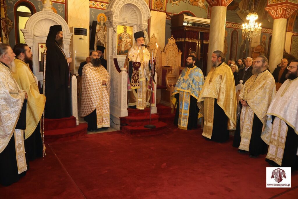 Ο σεπτός Ποιμενάρχης μας με την ολοκλήρωση της εσπερινής λατρευτικής σύναξης, αφού ευχαρίστησε τον π. Γρηγόριο για την μεστή νοημάτων ομιλία του, επισήμανε τις πολλές πνευματικές ευκαιρίες που μας δίνει η ευλογημένη περίοδος της Αγίας και Μεγάλης Τεσσαρακοστής και τον αγώνα που καλούμαστε να δώσουμε, ώστε η ψυχή μας απαλλαγμένη από βάρη να χαρεί την Ανάσταση του Κυρίου και να διεκδικήσει με αξιώσεις την Βασιλεία των Ουρανών. Στη συνέχεια, ο Σεβασμιώτατος μίλησε για την αξία τόσο της ειλικρινούς συγγνώμης, όσο και της συγχωρητικότητας στη χριστιανική ζωή. Ολοκληρώνοντας ζήτησε πρώτος συγγνώμη για τα όποια ακούσια λάθη ή παραλείψεις του, ενώ παρείχε και τη δική του συγγνώμη σε κάθε συνάνθρωπο.