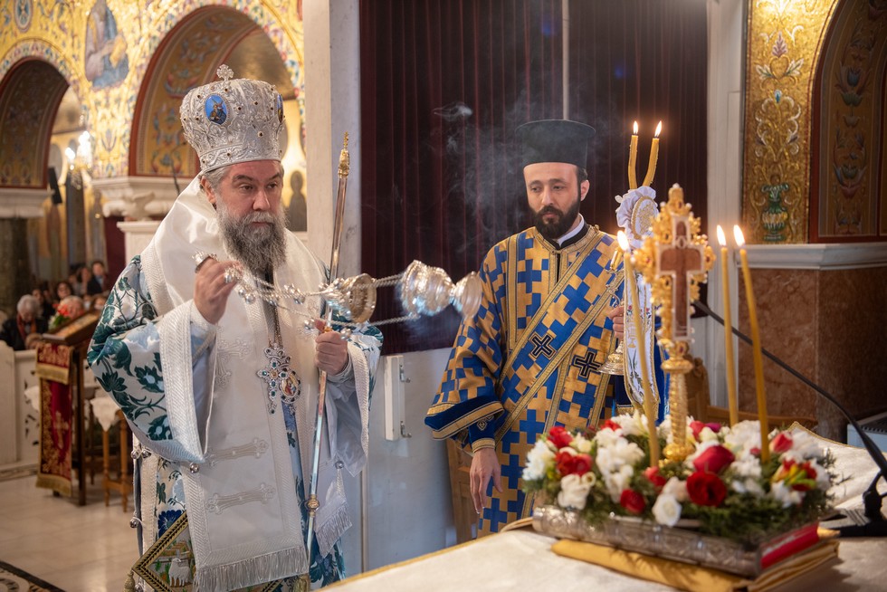Σήμερα, Γ’ Κυριακή των Νηστειών της αγίας και μεγάλης Τεσσαρακοστής, 23 Μαρτίου, τελέσθηκε η πανηγυρική θ. Λειτουργία στον ως είρηται εορτάζοντα ιερό Ναό, ιερουργήσαντος του Σεβ. κ. Θεολόγου, με την συμπροσευχητική παρουσία πλήθους ευλαβών χριστιανών.