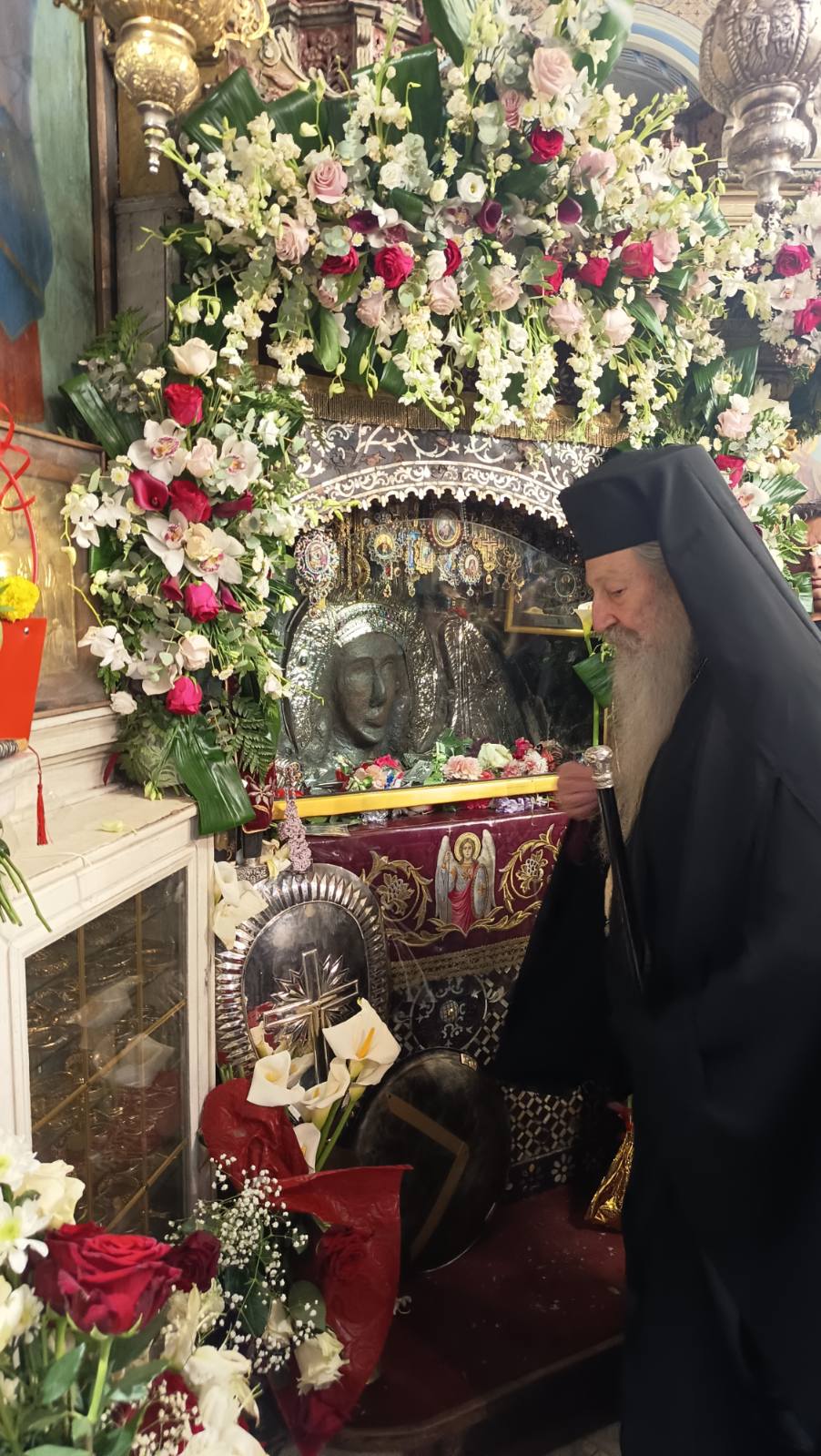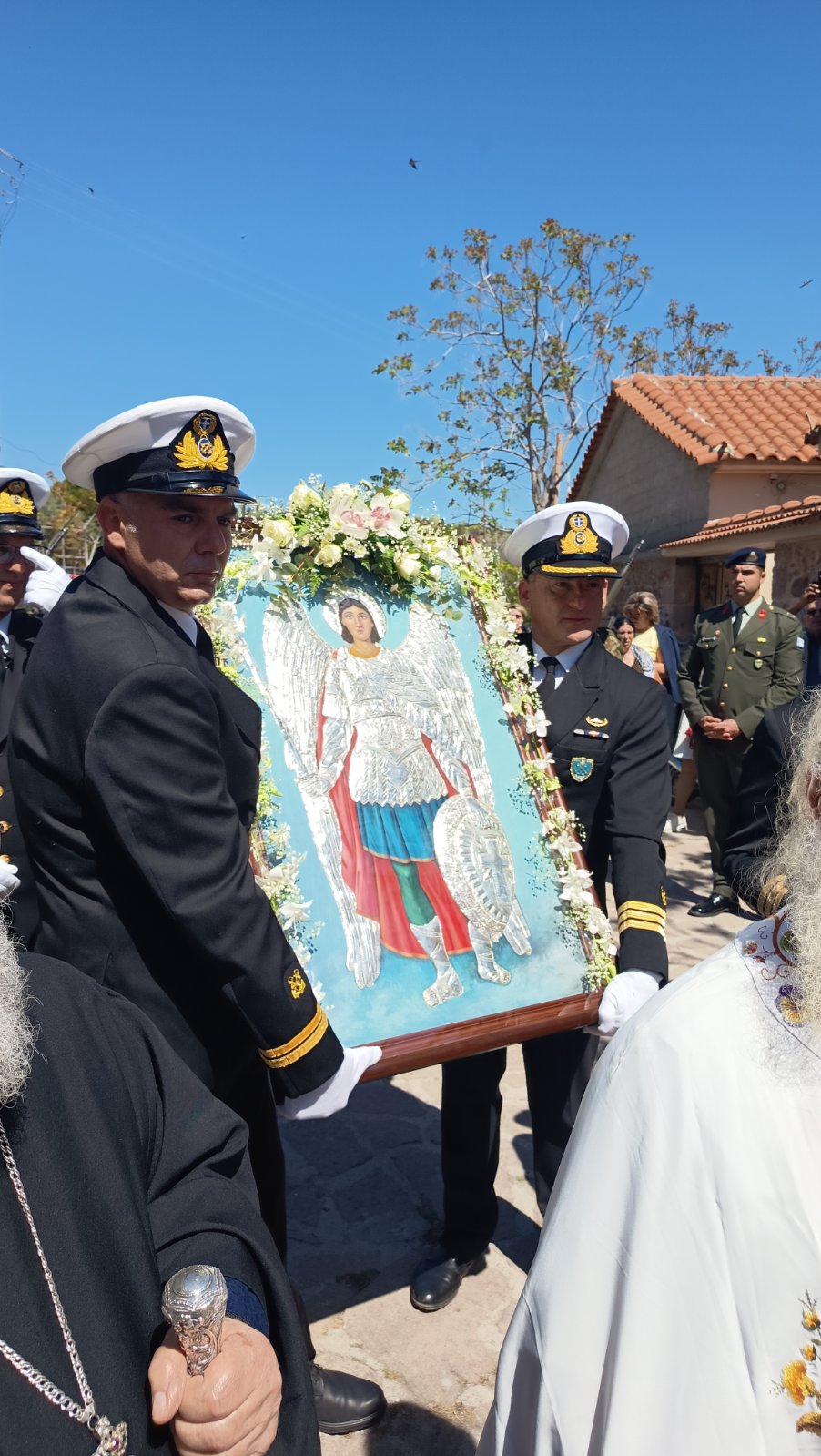 Προ της απολύσεως της θ. Λειτουργίας τελέσθηκε η καθιερωμένη λιτάνευση της θαυματουργού εικόνος του Αρχαγγέλου πέριξ του ιερού Προσκυνήματος παρουσία χιλιάδων ευλαβών πιστών, των αρχών του τόπου, της στρατιωτικής ηγεσίας και εκπροσώπων των σωμάτων ασφαλείας.