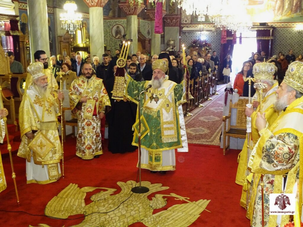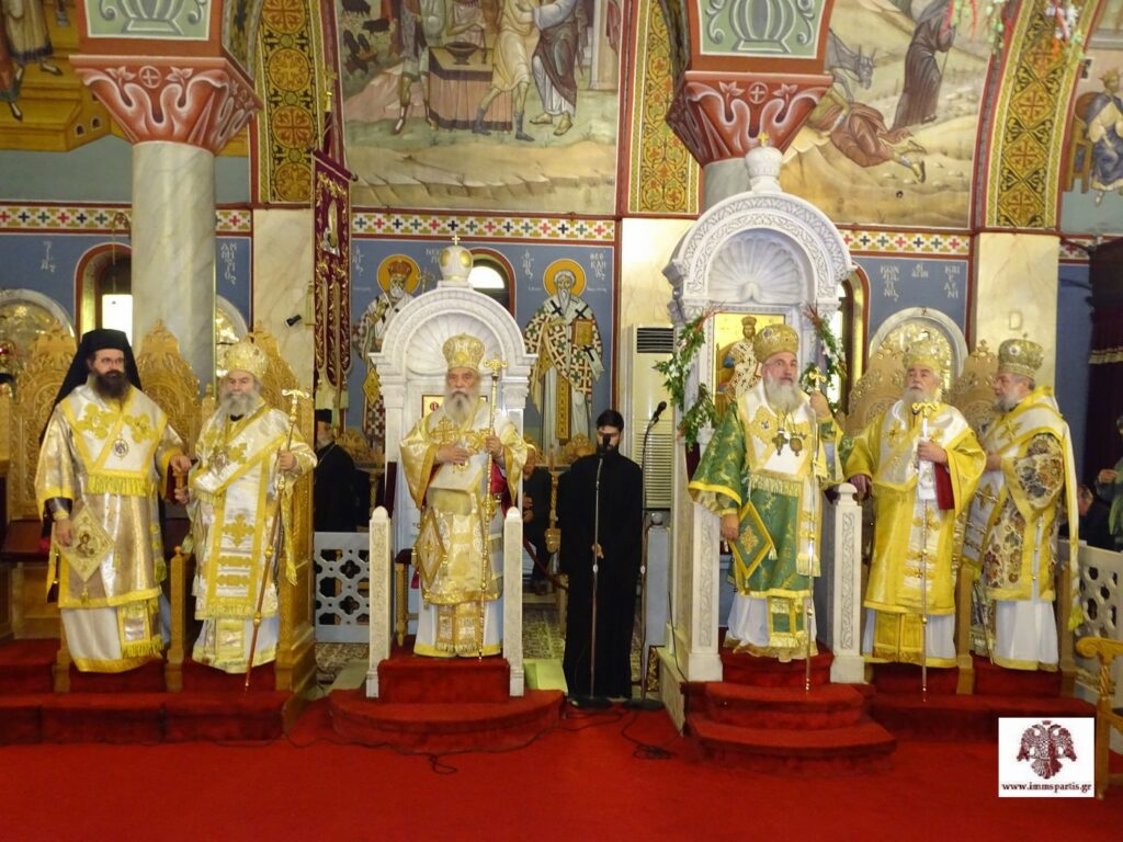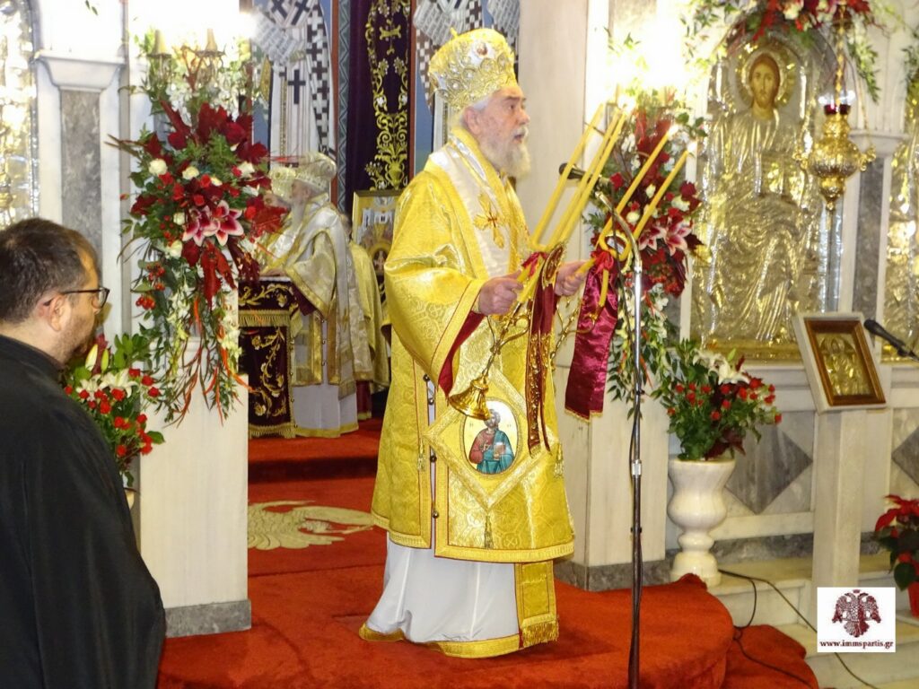 Την κυριώνυμη ημέρα της εορτής, Τετάρτη 26 Νοεμβρίου 2025, στον πανηγυρίσαντα περικαλλή Ιερό Ναό, τελέσθηκε αρχικά ο Όρθρος χοροστατούντος του Σεβασμιωτάτου Αρχιεπισκόπου Κρήτης κ. Ευγενίου Β΄, ενώ ακολούθησε η αμφιοφορία του σύμφωνα με το βυζαντινό τυπικό. Τους άρτους ευλόγησε ο Σεβασμιώτατος Μητροπολίτης Φωκίδος κ. Θεόκτιστος. Στην Πολυαρχιερατική Θεία Λειτουργία που ακολούθησε συμμετείχαν επίσης οι Σεβασμιώτατοι Μητροπολίτες Μάνης κ. Χρυσόστομος και Γόρτυνος και Μεγαλοπόλεως κ. Νικηφόρος, ο σεπτός Ποιμενάρχης μας κ. Ευστάθιος, ο οποίος και προέστη, και ο Θεοφιλέστατος Επίσκοπος Λακεδαιμονίας κ. Θεόφιλος, Βοηθός Επίσκοπος της Ιεράς Μητροπόλεώς μας.